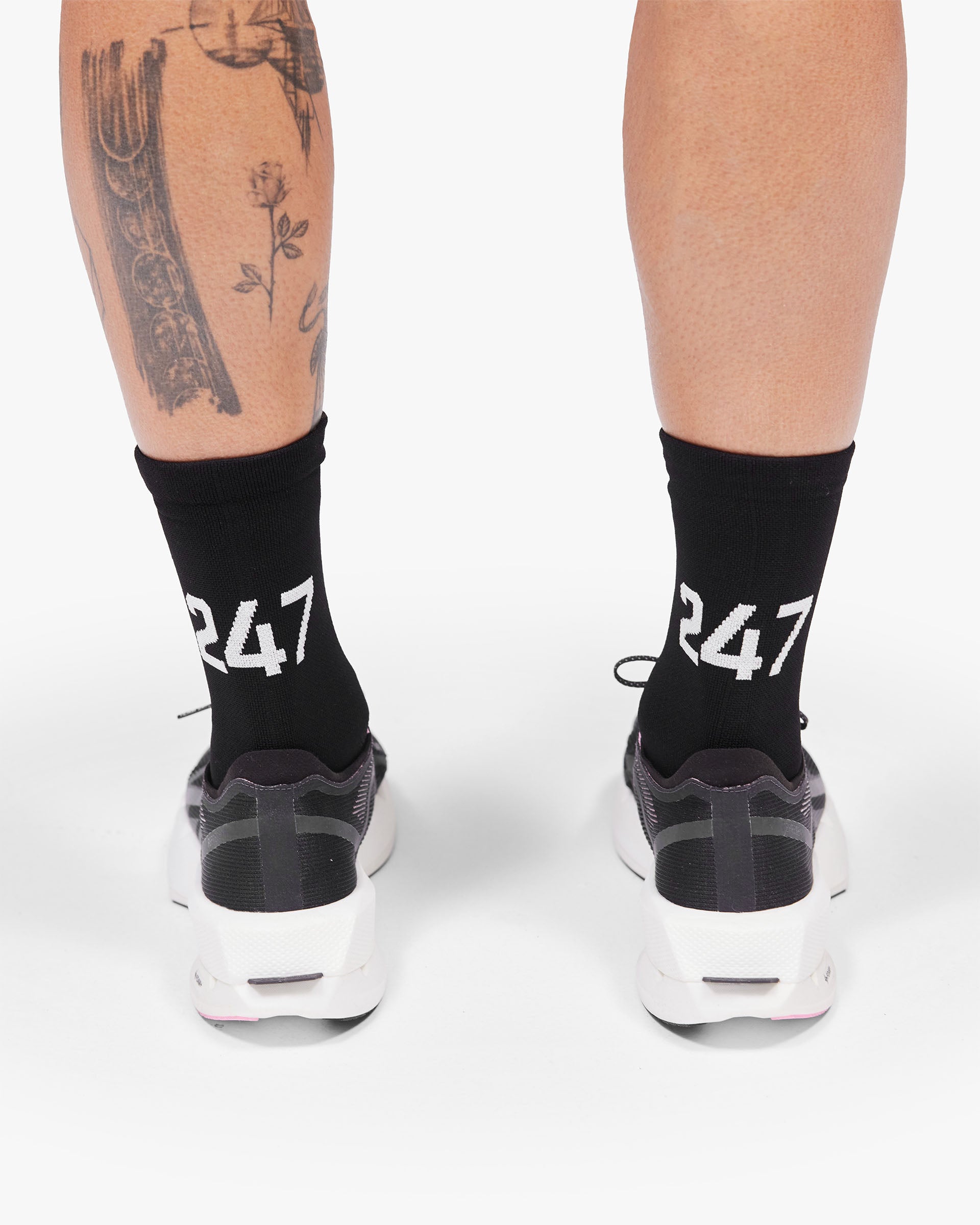 Introducing die 247 Numbers Socke in Jet Black. Entwickelt für hybrides Training, gemacht für Athleten, die ohne Kompromisse trainieren. Eine Nylon-Rennsocke aus einer hochdehnbaren Nylonmischung mit konstruierten Strickstrukturen für gezielte Unterstützung von Fußgewölbe und Ferse. Abgerundet mit Represent Branding an der Zehenpartie, 247 Lock-up an der Rückseite des Beins und On A Mission am inneren Bündchen. Einheitsgröße, 7–11.
