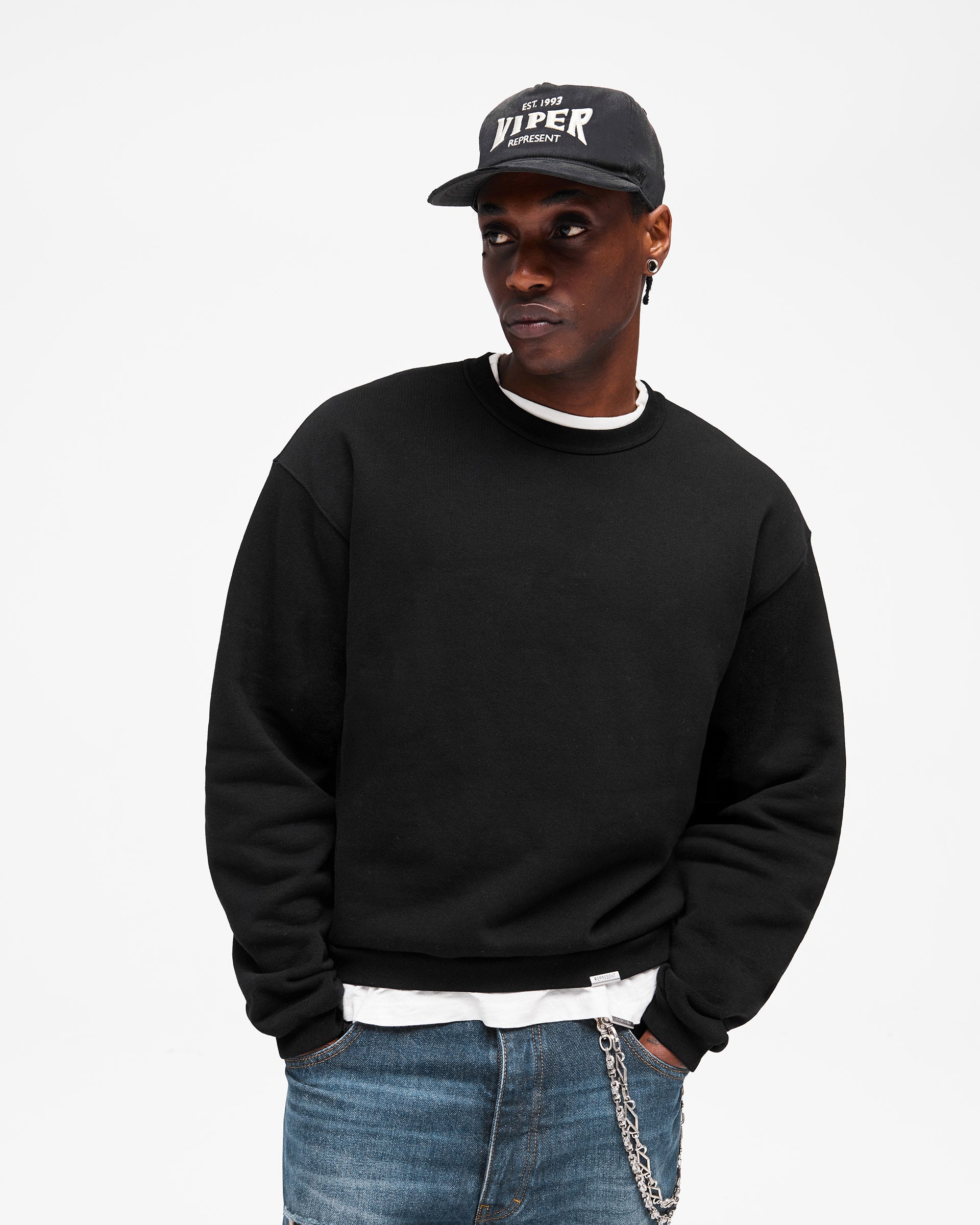 Mit Twin Stitch Details, bei denen je eine Naht oberhalb und eine unterhalb jeder Naht verläuft, einem aufgelegten, kürzeren Rippkragen mit leicht weiterem Halsausschnitt und 1x1 Ripp-Details durchgehend. Abgerundet mit unserer charakteristischen Represent Metall-Leiste am Saum.