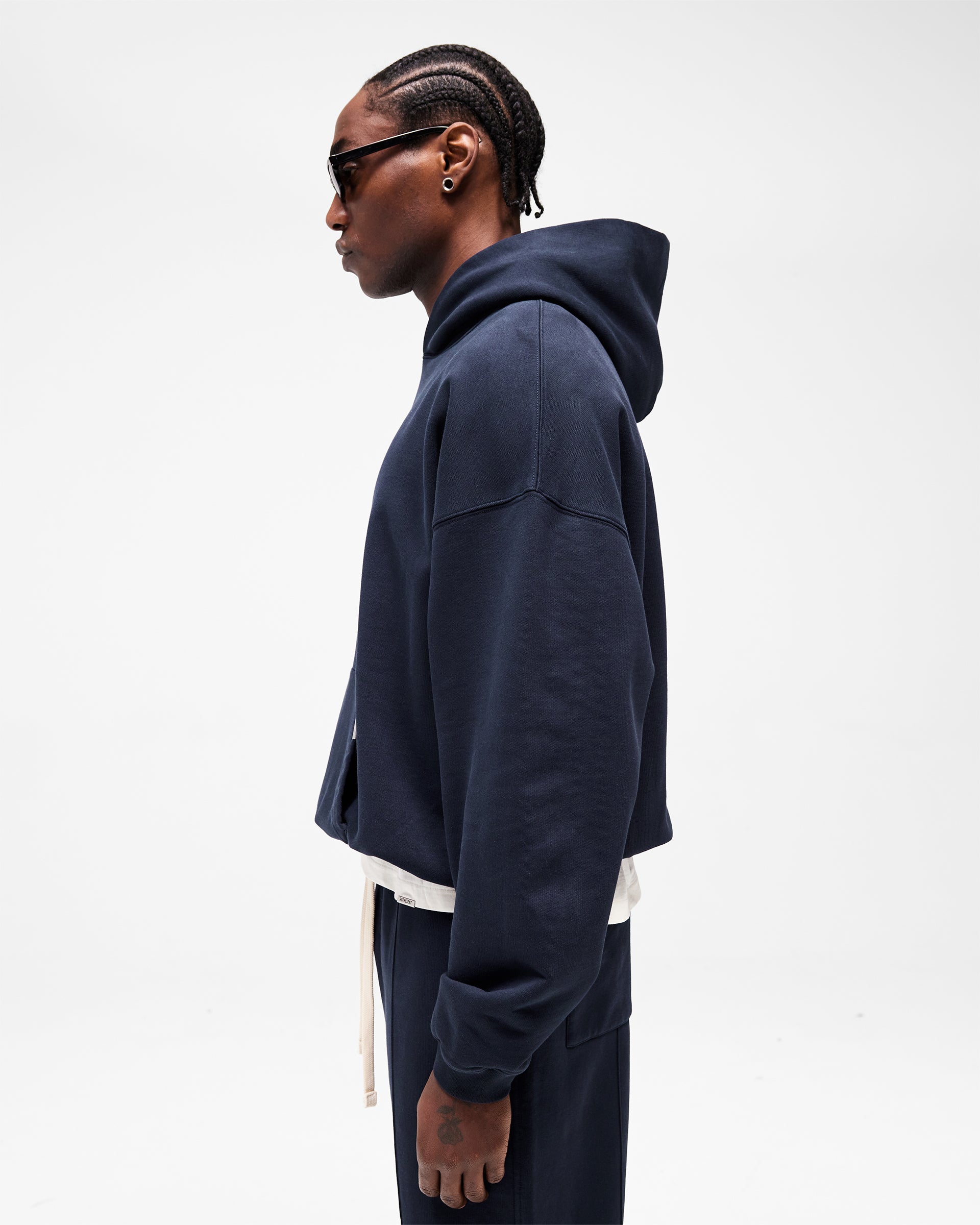 Wir stellen den Initial Oversized Hoodie in Midnight Navy vor, eine Oversized-Silhouette aus 390 g/m² Baumwolle in einer cleanen, einfarbigen Farbgebung. Entworfen mit entspannten, oversized Proportionen, bietet der Hoodie täglichen Komfort mit Premium-Gewicht und satter Haptik.