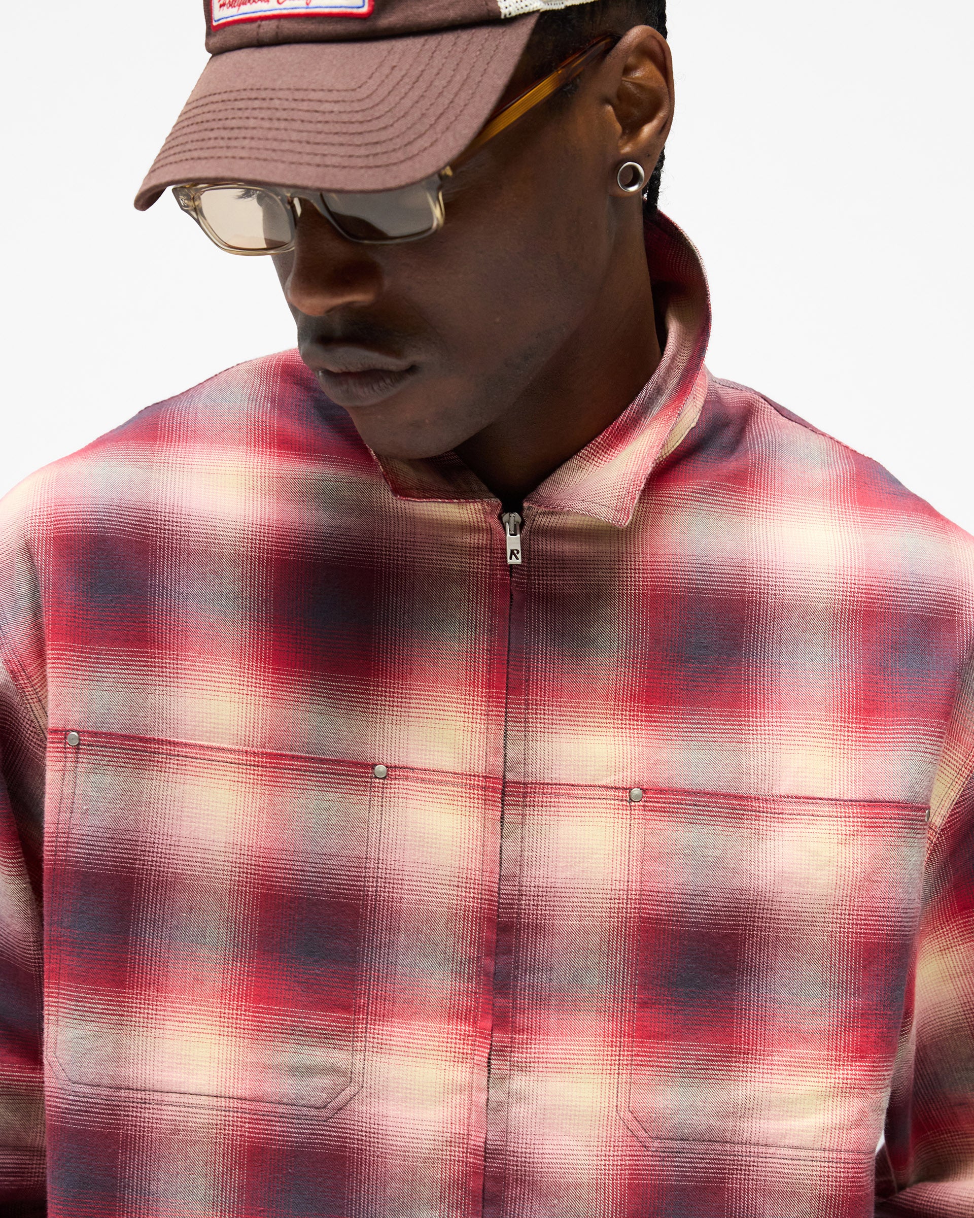 Wir präsentieren das Sunset Flannel in Racing Red, ein Hemd im Boxy Fit, gefertigt aus kariertem Baumwollstoff. Dieses Piece kommt mit einer Chevron-Rückenpasse für durchdachte Details, einem zentralen Front-Reißverschluss mit Kissing-Welt sowie abgesteppten Brusttaschen, verstärkt mit Nieten, und einer Represent Metall-Leiste am Saum. Die Farbvariante Racing Red verleiht dem Karomuster Wärme und macht das Hemd ideal zum Layering oder solo tragbar.