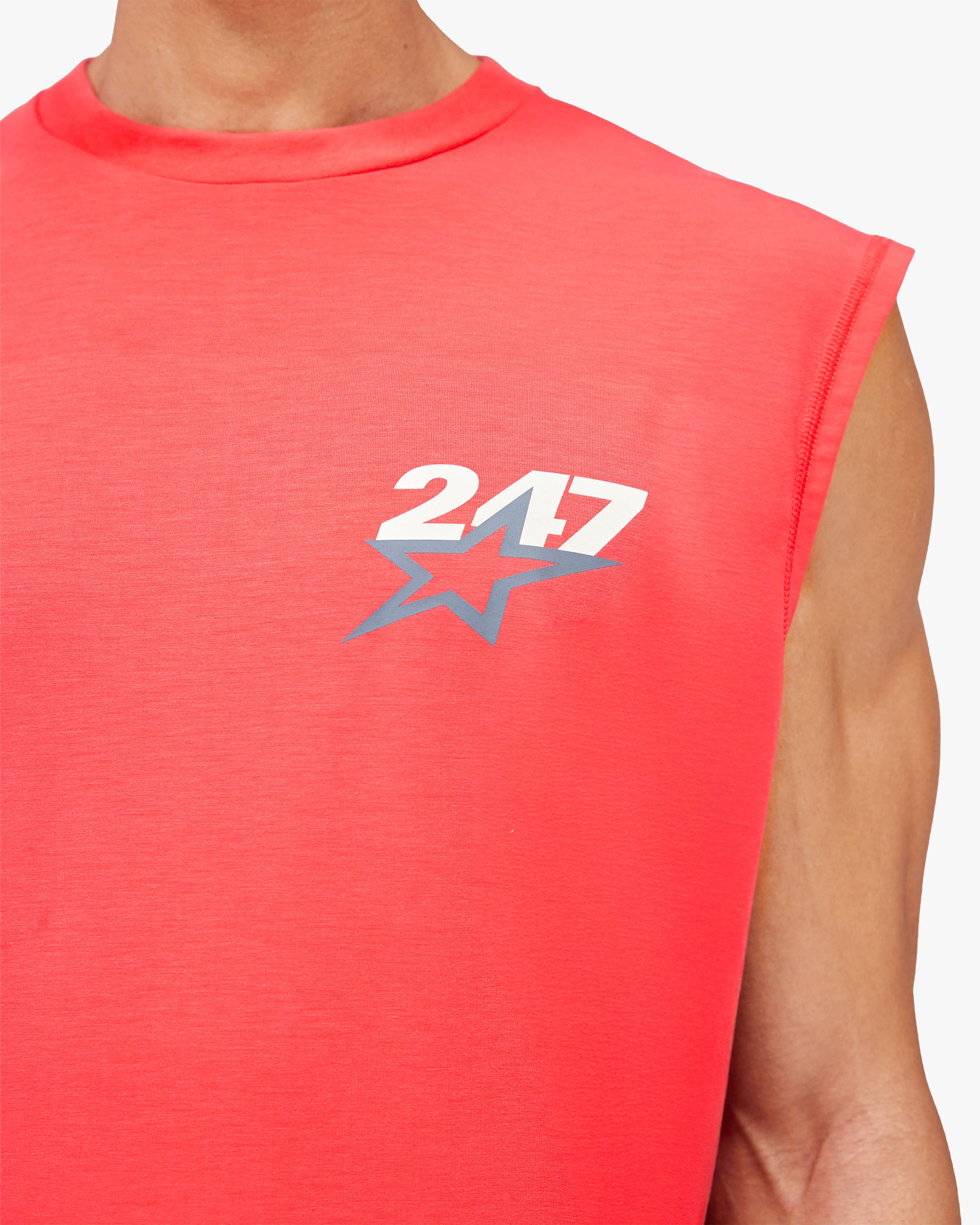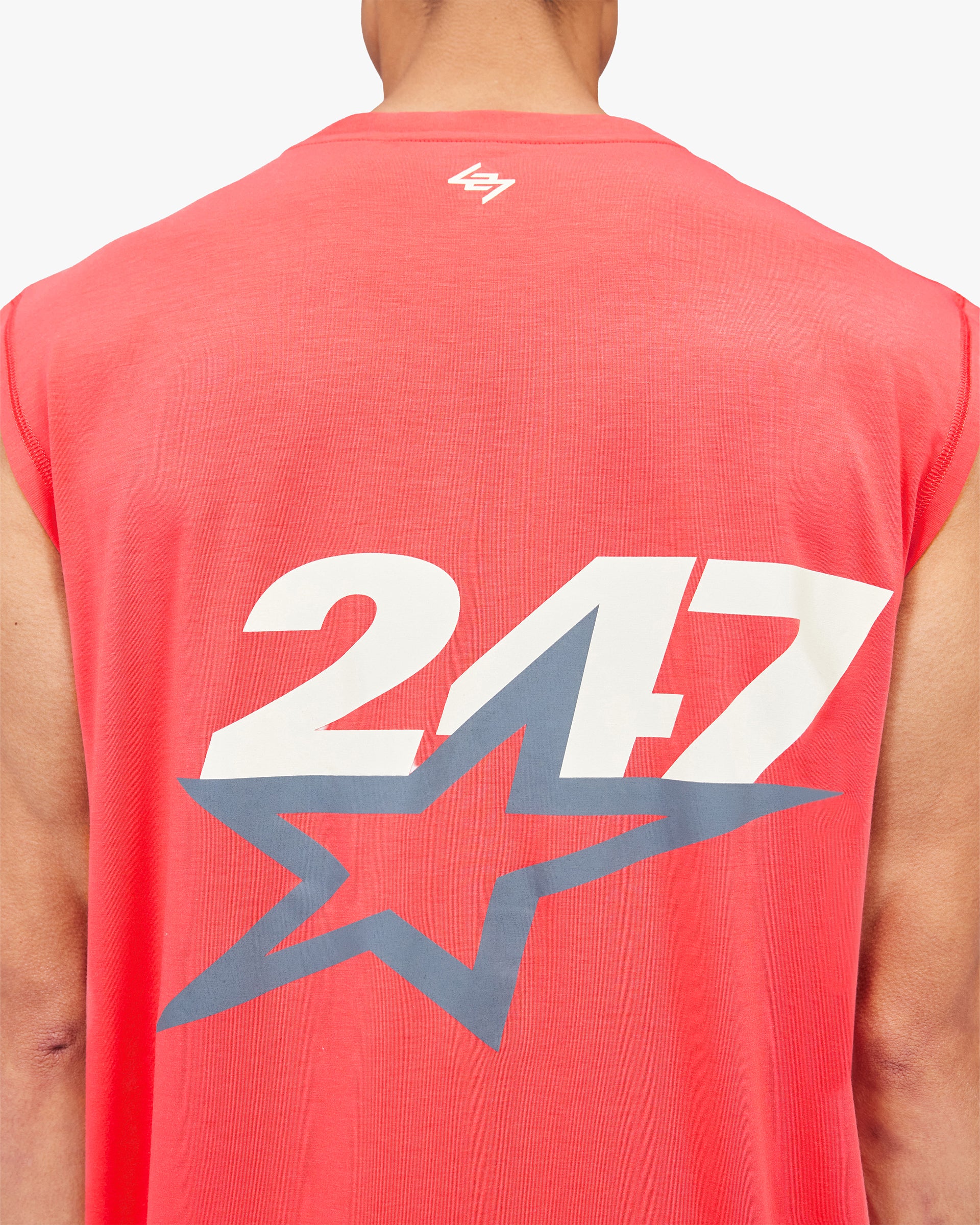 Introducing the Team 247 Star Oversized Tank in Racing Red. Crafted from Dri-Release fabric with anti-bacterial and wicking finishes, this oversized silhouette delivers complete freedom of movement throughout any session. A bold star graphic carries the energy of SS26, referencing the optimism of 1980s track and field. Finished with Team 247 branding to the chest and back.