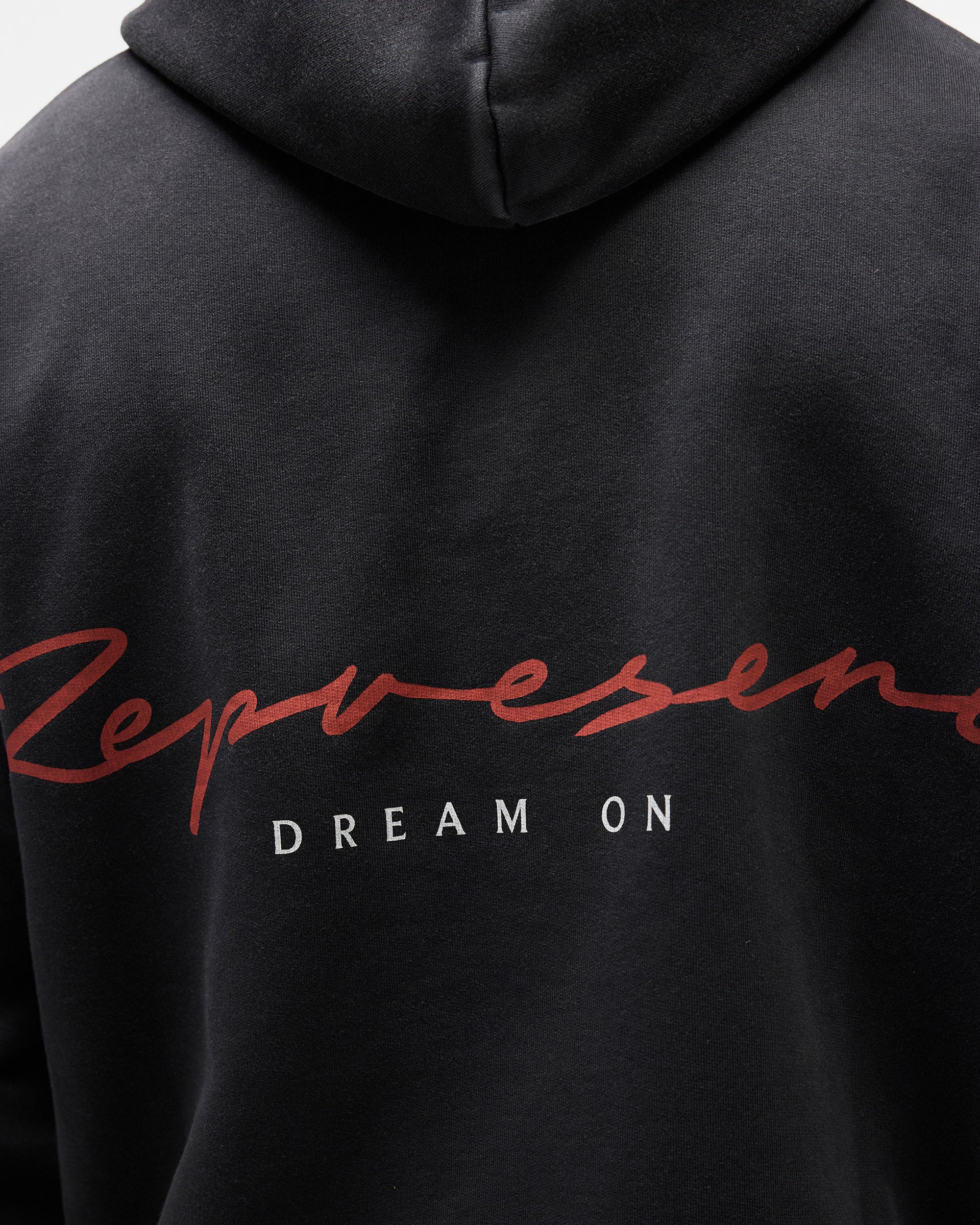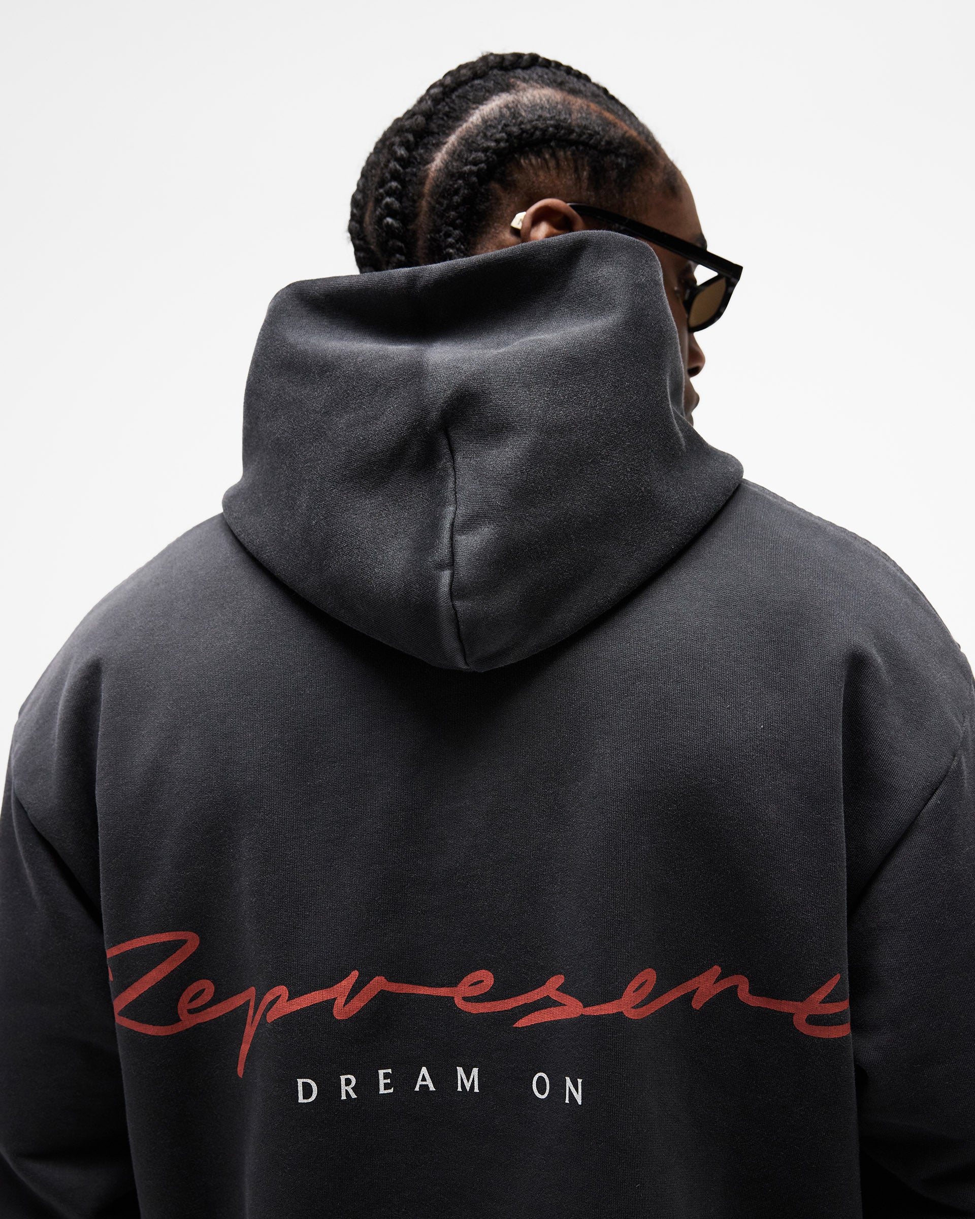 Le dos arbore le logo script Represent et le lettrage Dream On dans un ton corail contrasté. Fini avec une capuche à cordon de serrage, une poche kangourou, des poignets côtelés et un ourlet élastiqué.