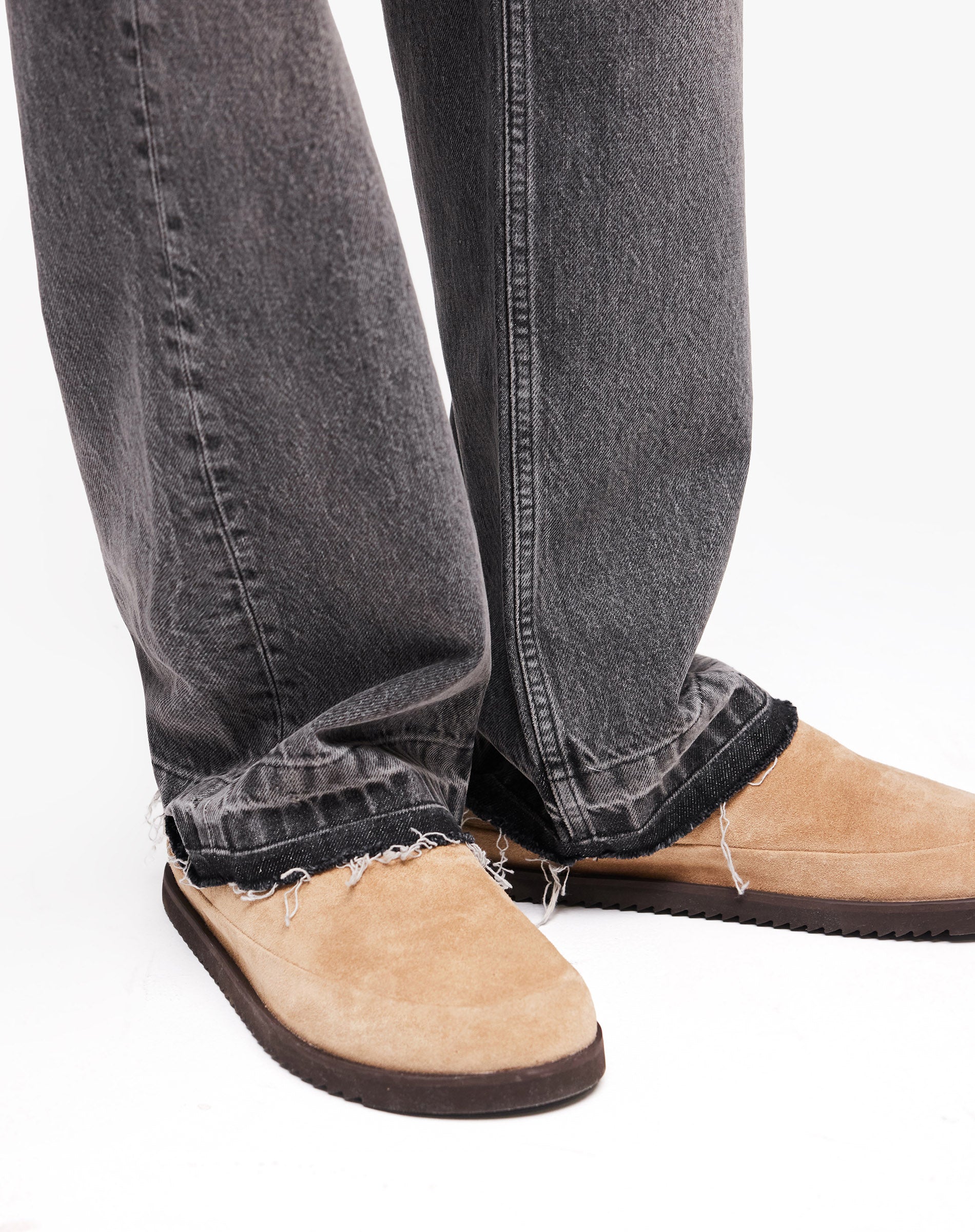Présentation du Heaton Denim en Shadow, une silhouette inspirée du workwear issue de la Heaton Capsule. Confectionné en denim de coton poids lourd, il présente une coupe droite personnalisée avec une ouverture légèrement plus ample, finie par des ourlets bruts pour un caractère authentique.