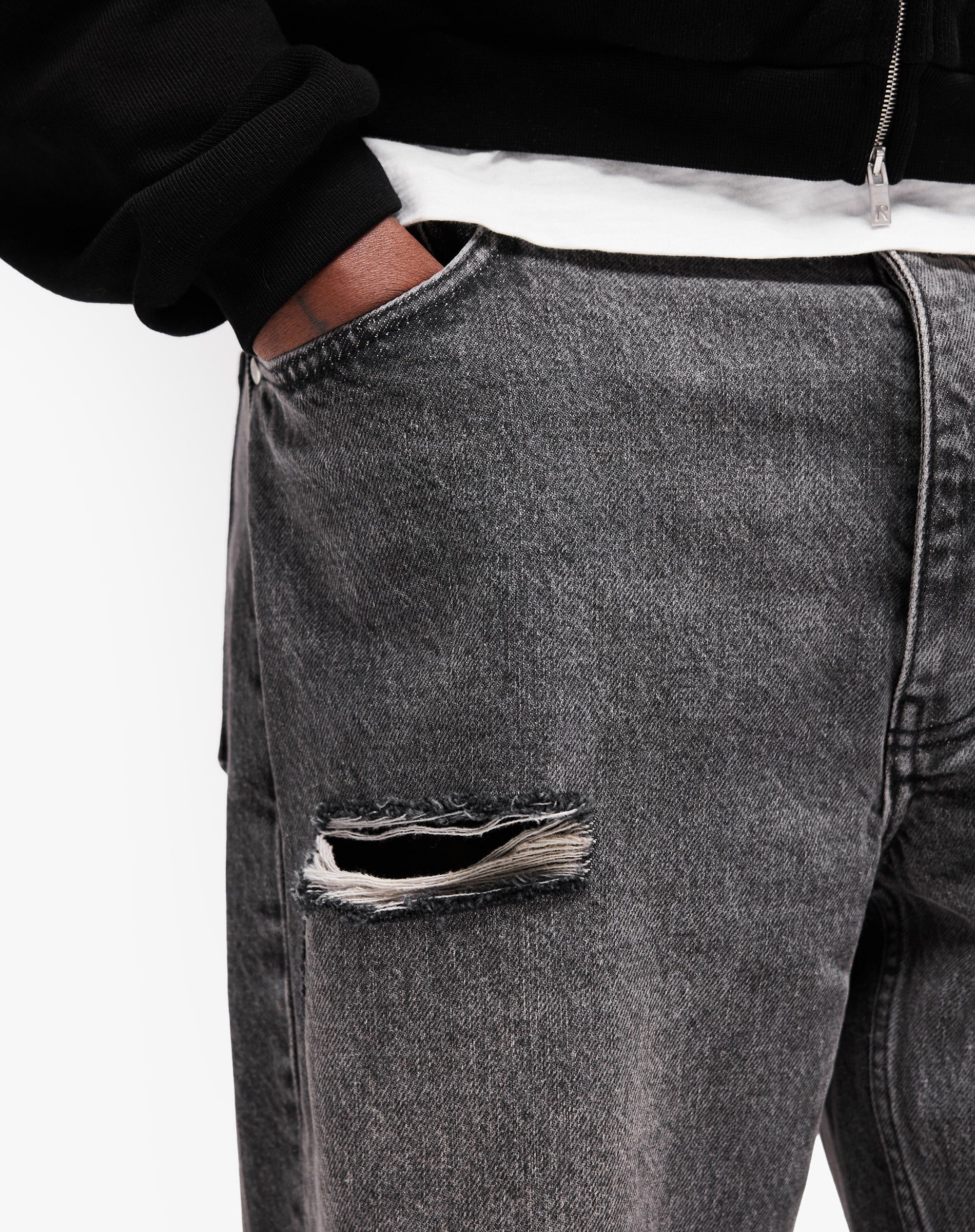 - Jambe droite avec ouverture plus ample