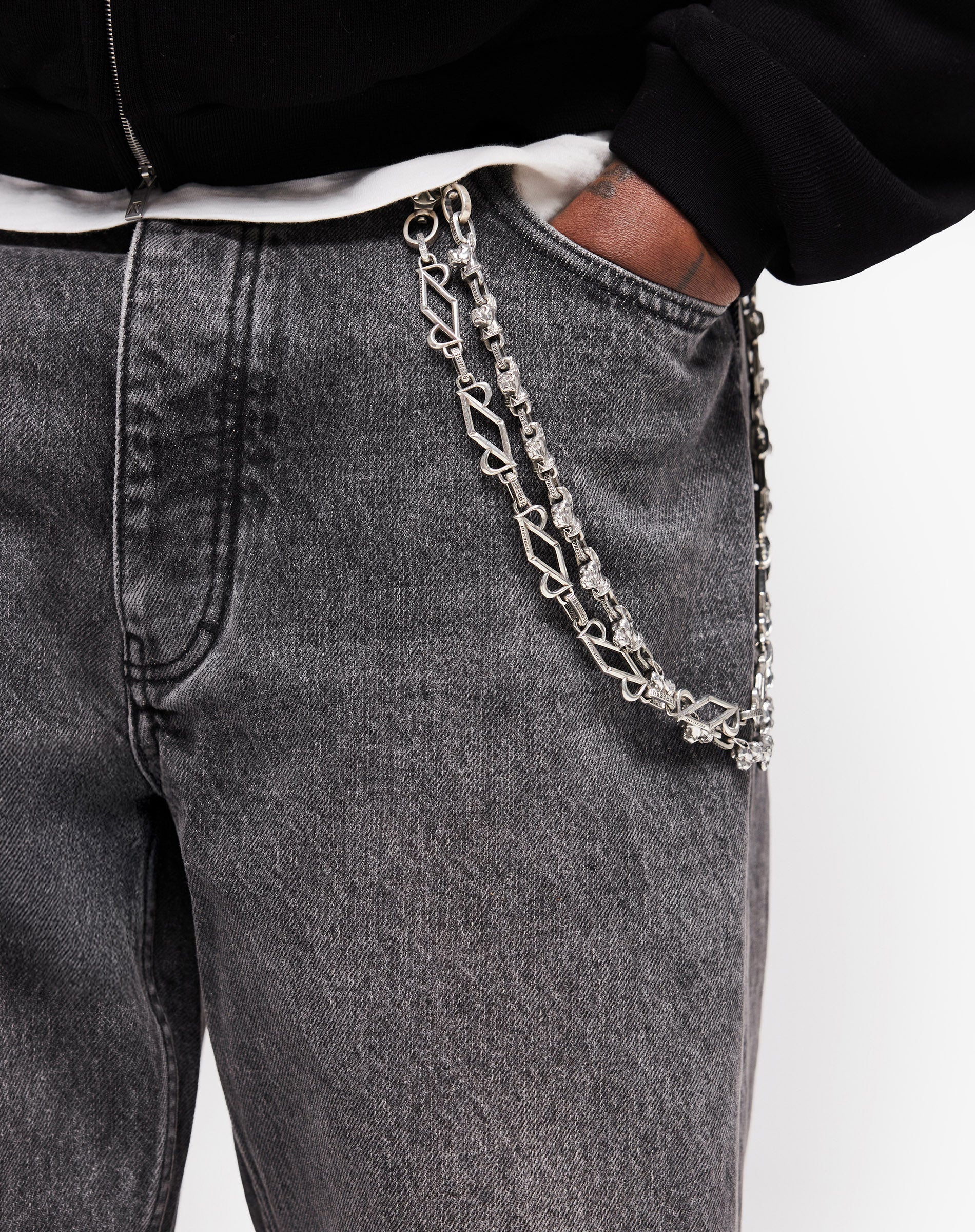 Mensurations du mannequin : Le mannequin mesure 184,5 cm et pèse 72 kg et porte une taille 32