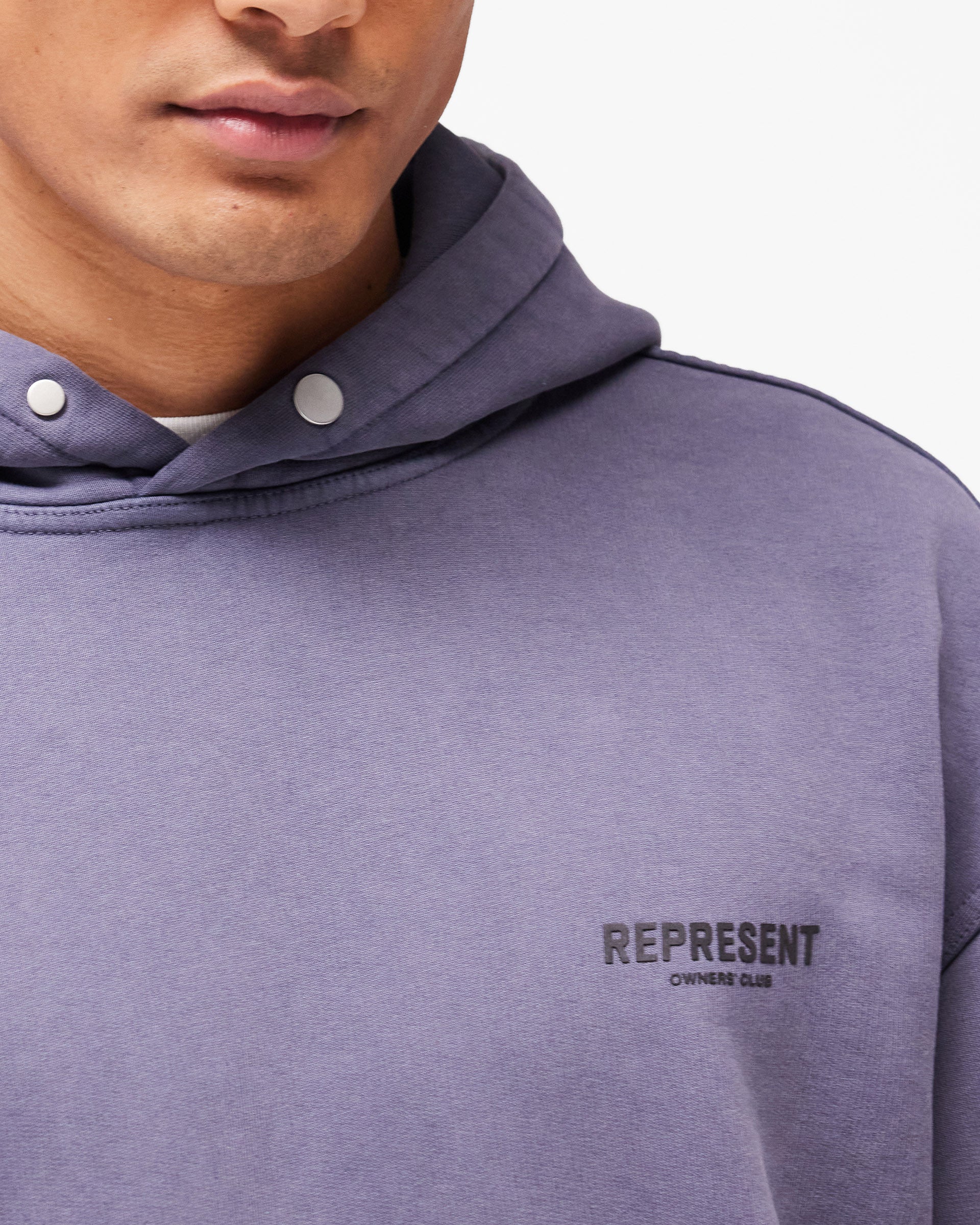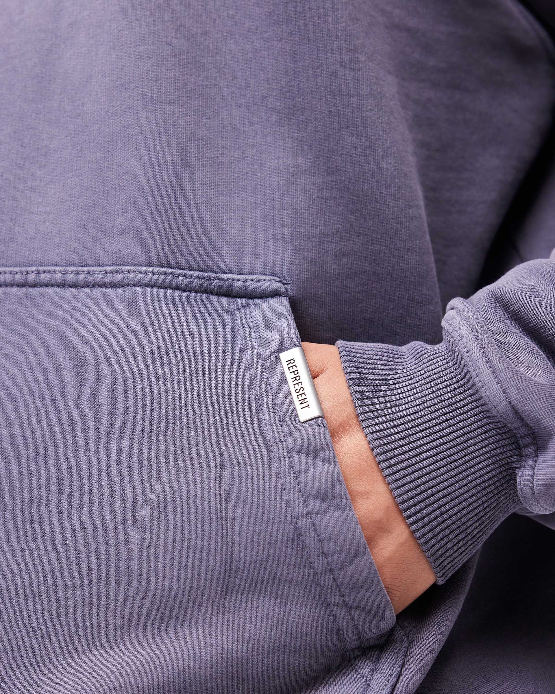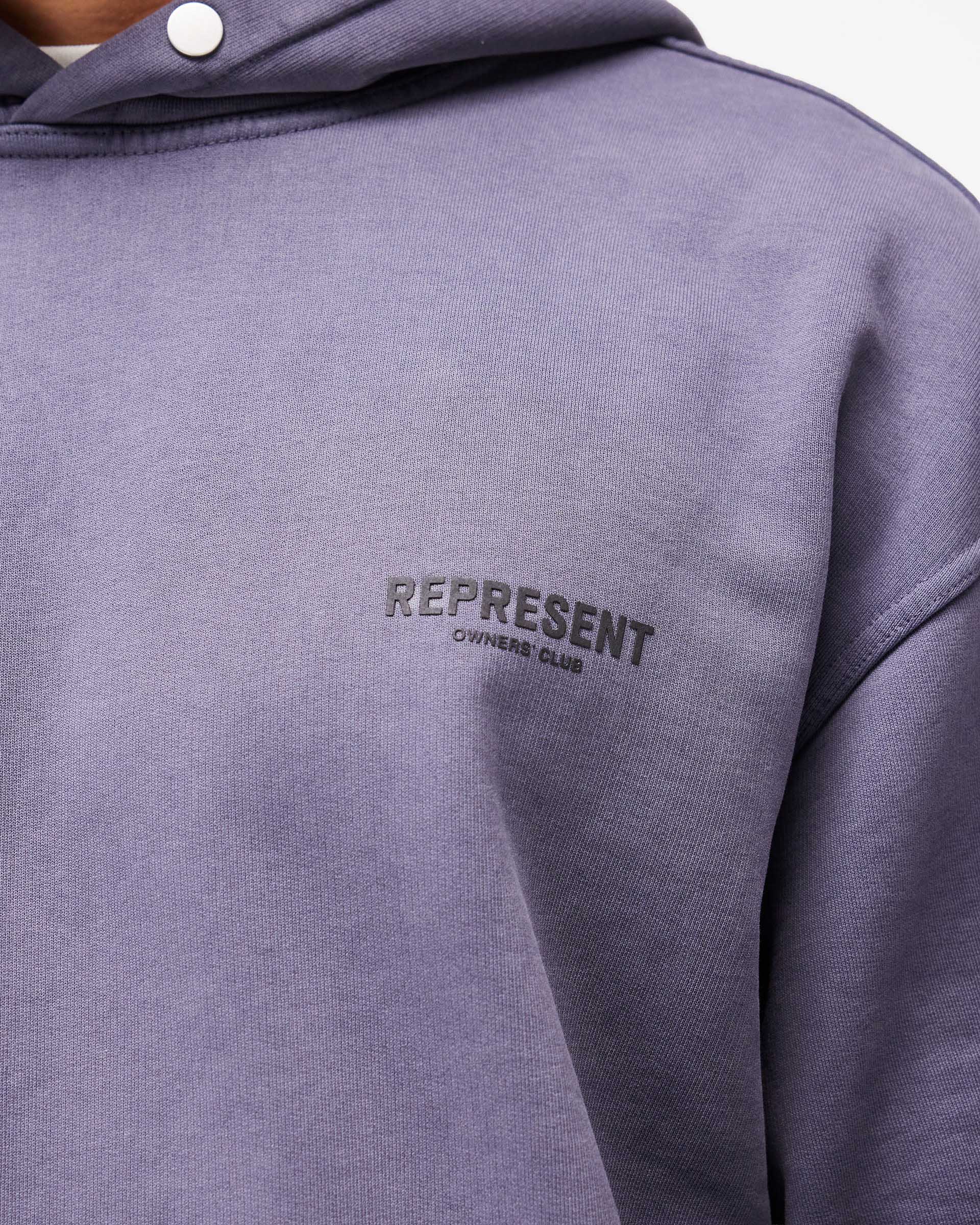 Introducing le Hoodie Represent Owners Club en Storm. Notre pièce la plus reconnue, née à Manchester et portée dans le monde entier. Confectionné en coton loopback poids lourd 480gsm, teint en pièce pour une profondeur de couleur et pré-rétréci pour une sensation déjà portée dès la première utilisation. Le marquage Owners Club est placé sur la poitrine et au dos, fini avec une capuche à bouton-pression Cobrax, des finitions côtelées et notre coupe Oversized Fit signature qui tombe large et carrée. Fabriqué au Portugal.