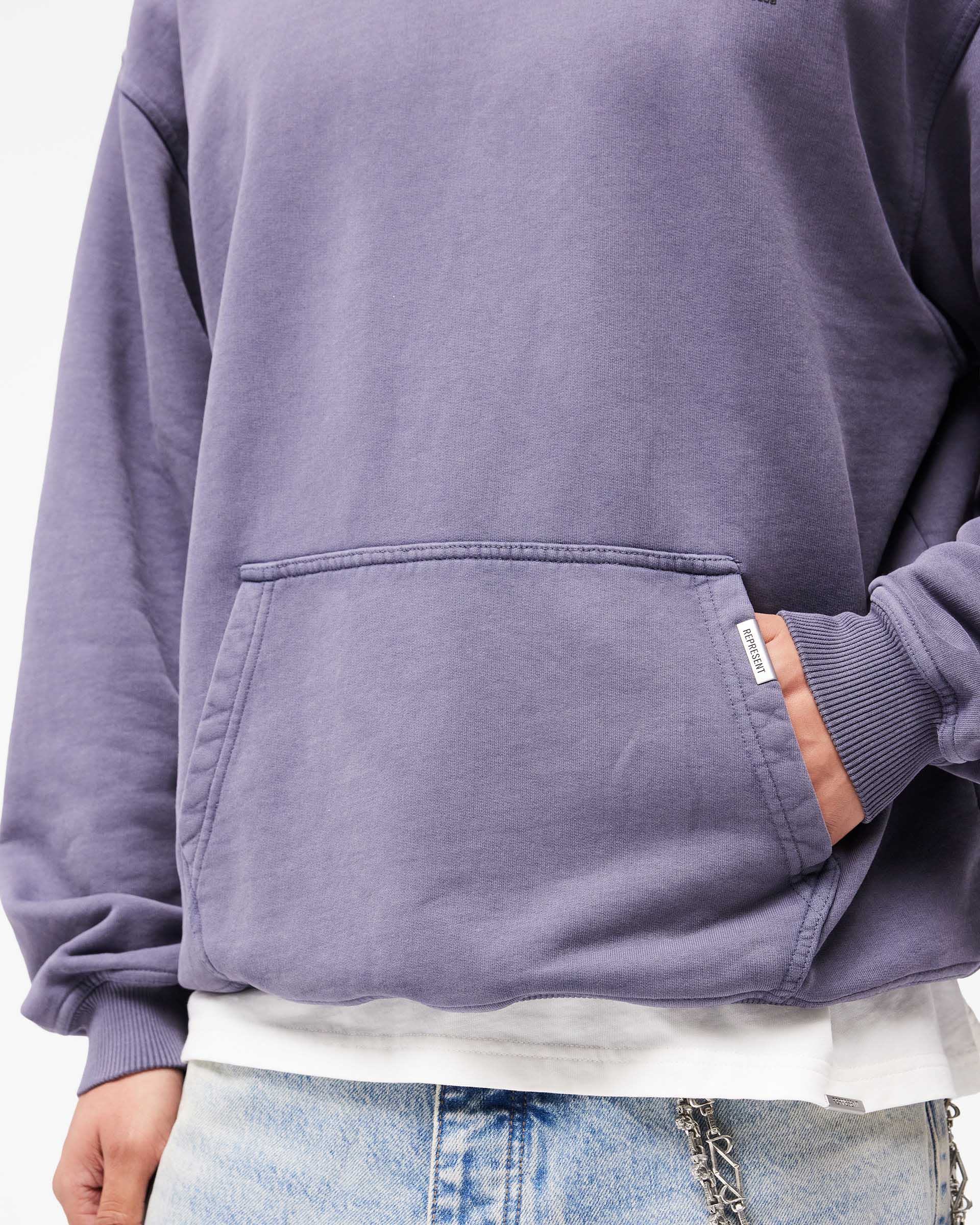 Ce produit suit la coupe surdimensionnée emblématique de Represent. Ce style tombe large et carré. Ce modèle taille grand mais pour une coupe classique, veuillez prendre une taille en dessous.De quoi sont fabriqués les sweats à capuche Represent ?