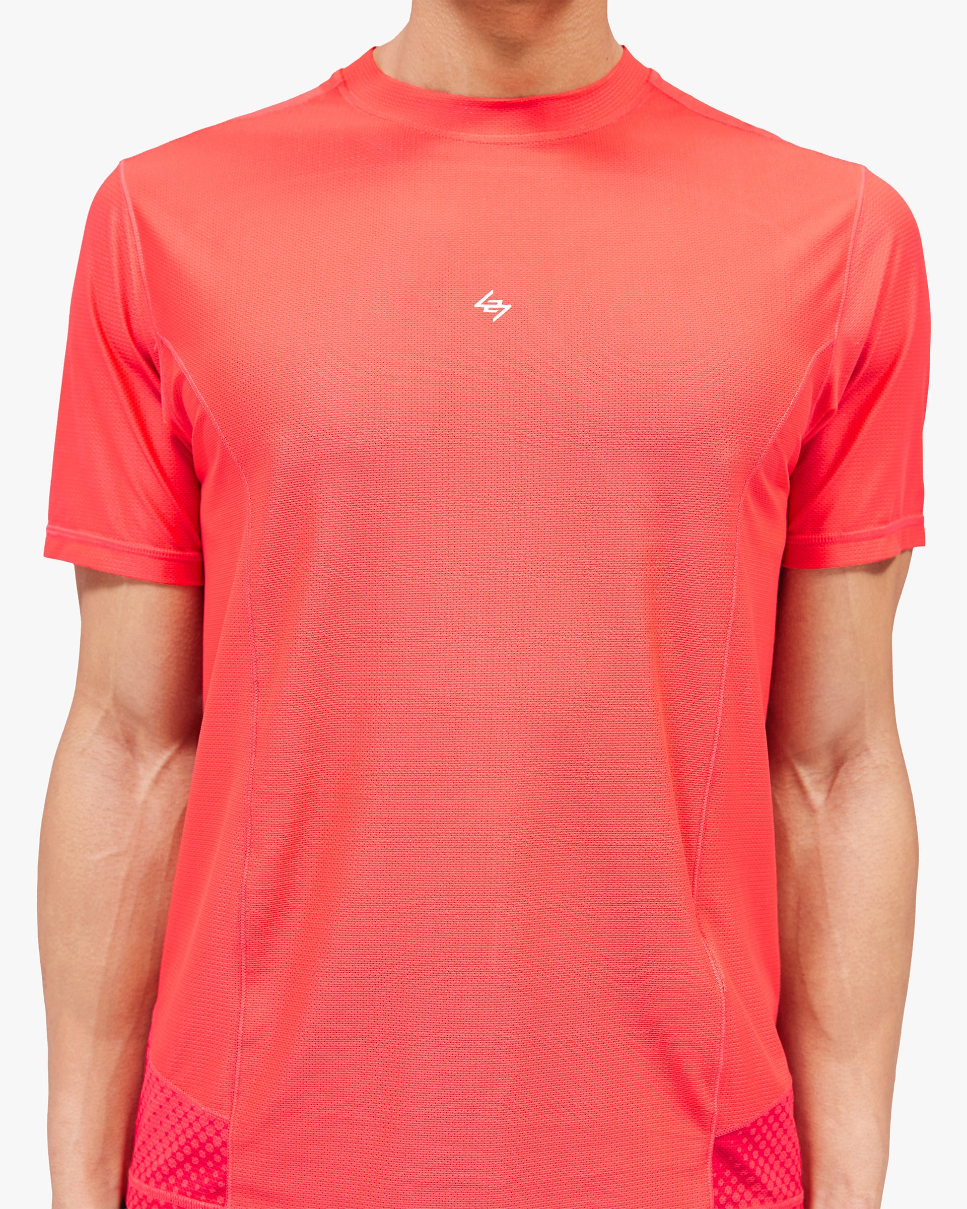 Introducing the 247 Hybrid T-Shirt in Red Fade Out. Constructed from lightweight mesh fabric with panelled Merrow stitch detail, this tee delivers anti-bacterial properties, wicking performance and quick-dry technology for unrestricted training across disciplines. A printed back panel in an ultra fade-out finish brings vintage athleticism to modern performance. Built for strength, running and hybrid fitness.