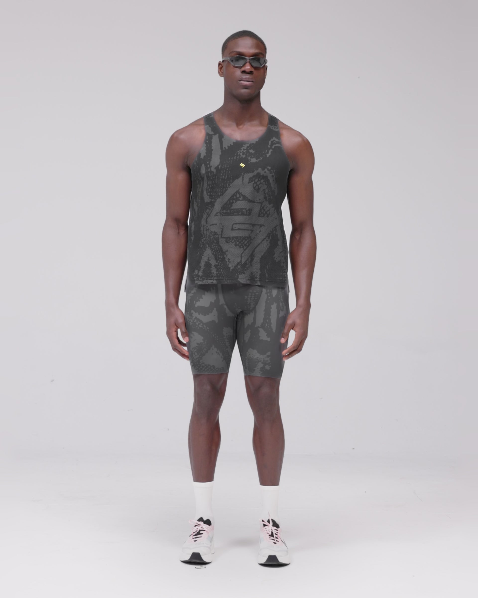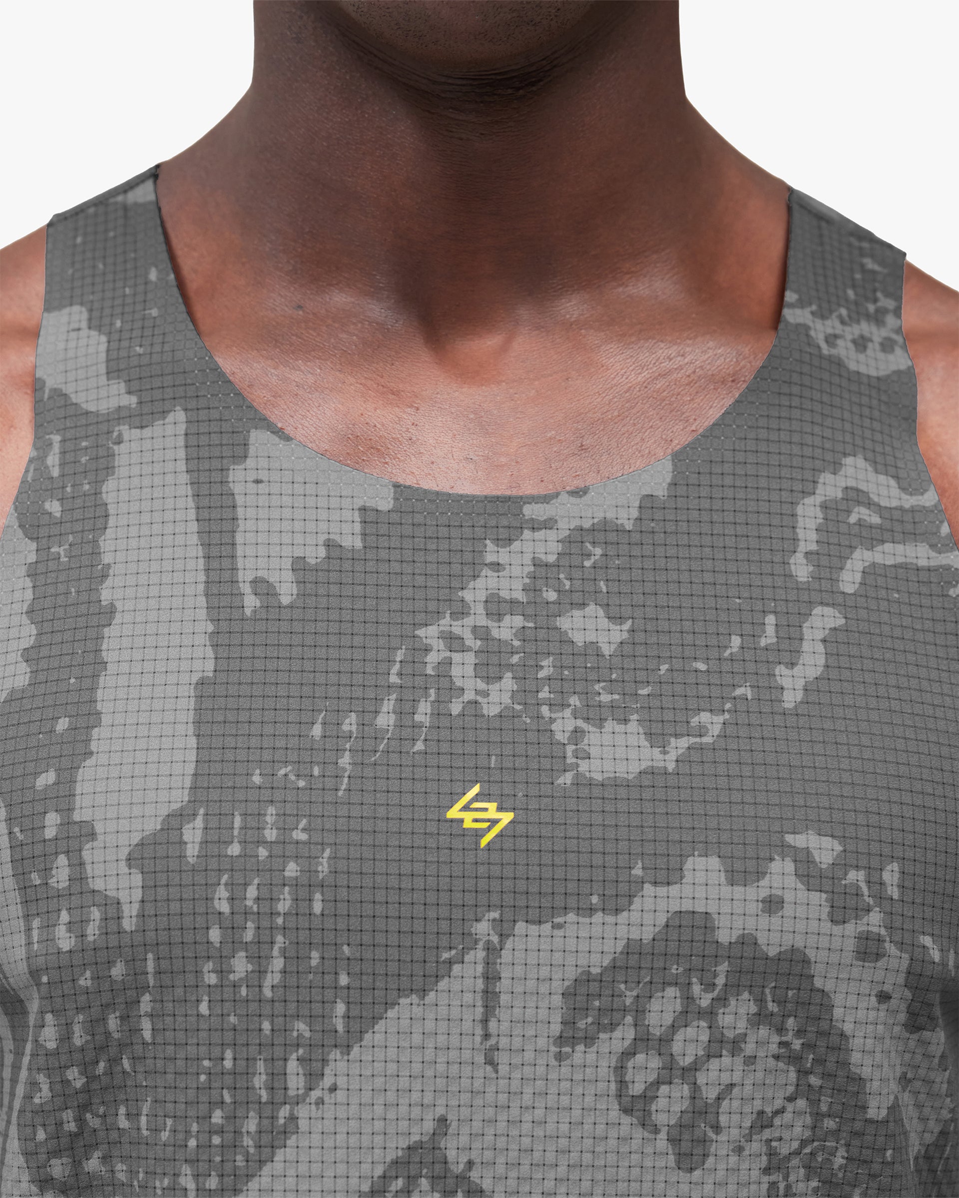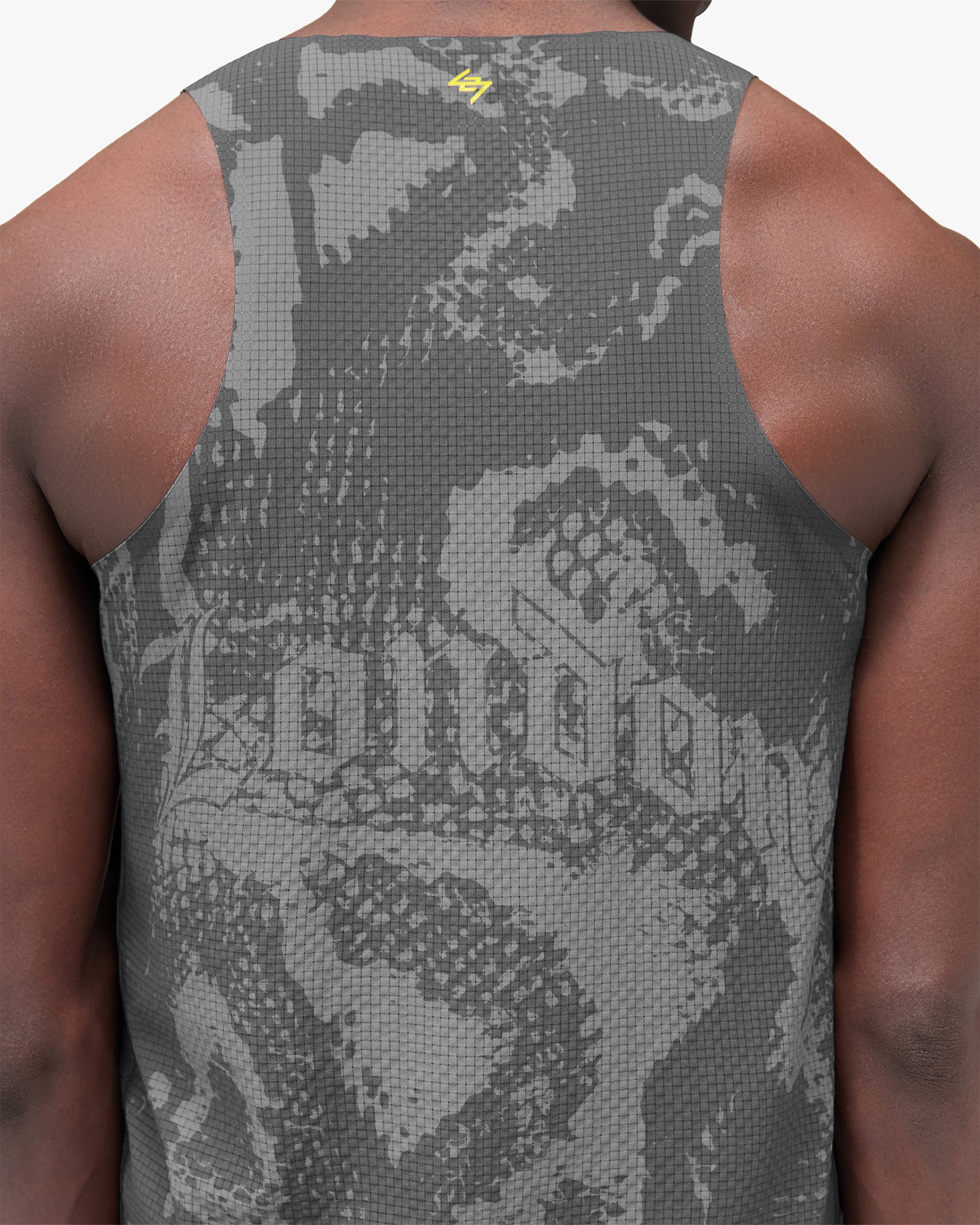 Introducing the 247 London Singlet in Vintage Grey. Designed for peak performance on race day, this ultra-light singlet is crafted from anti-bacterial mesh fabric with an all-over tonal printed finish. A honeycomb mesh back panel enhances ventilation during high-intensity efforts, while the racerback silhouette maximises freedom of movement across every stride.