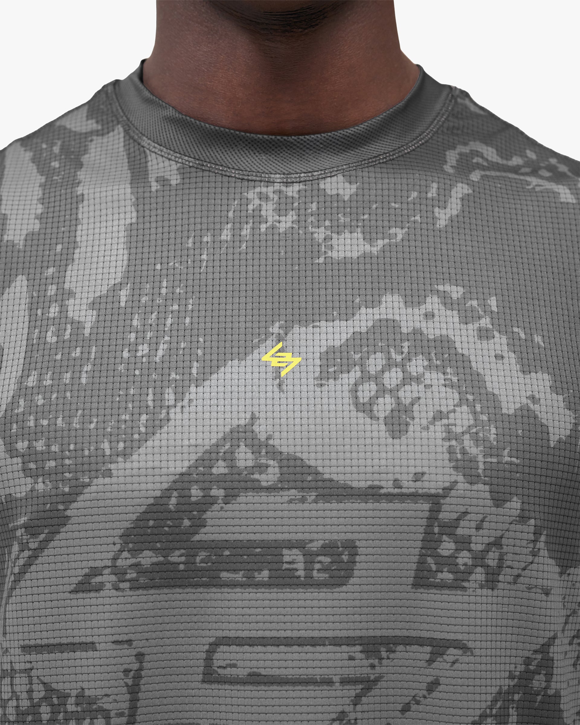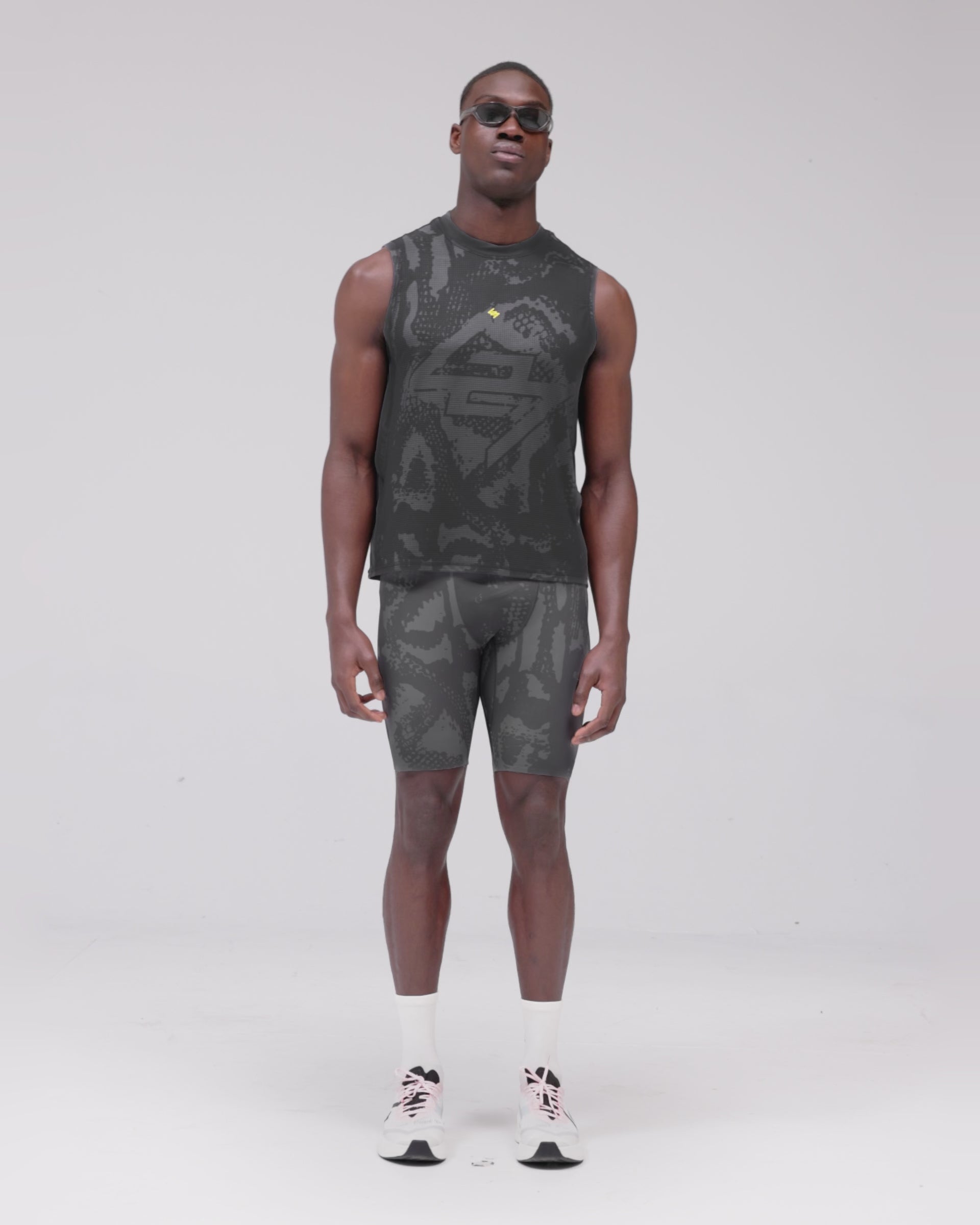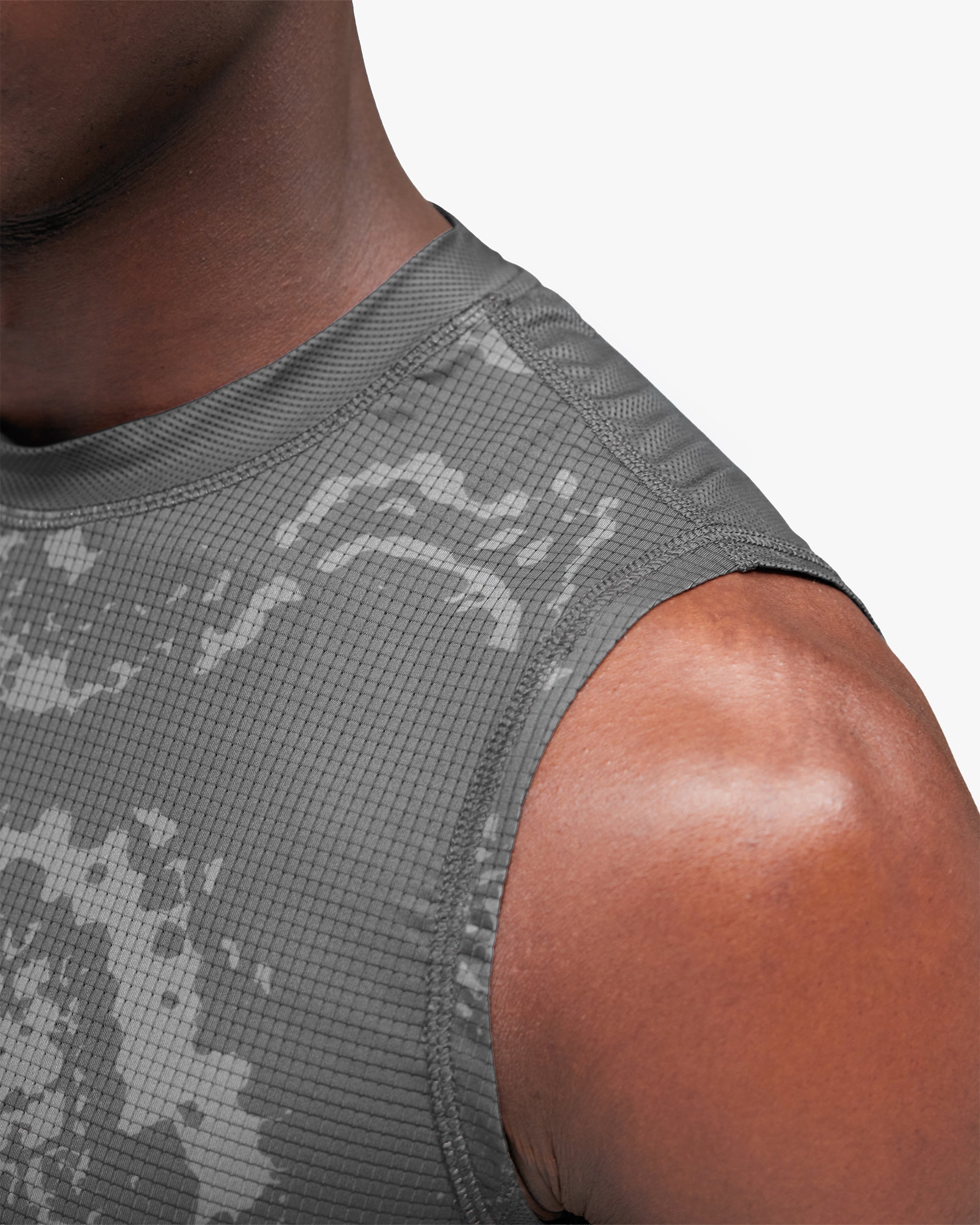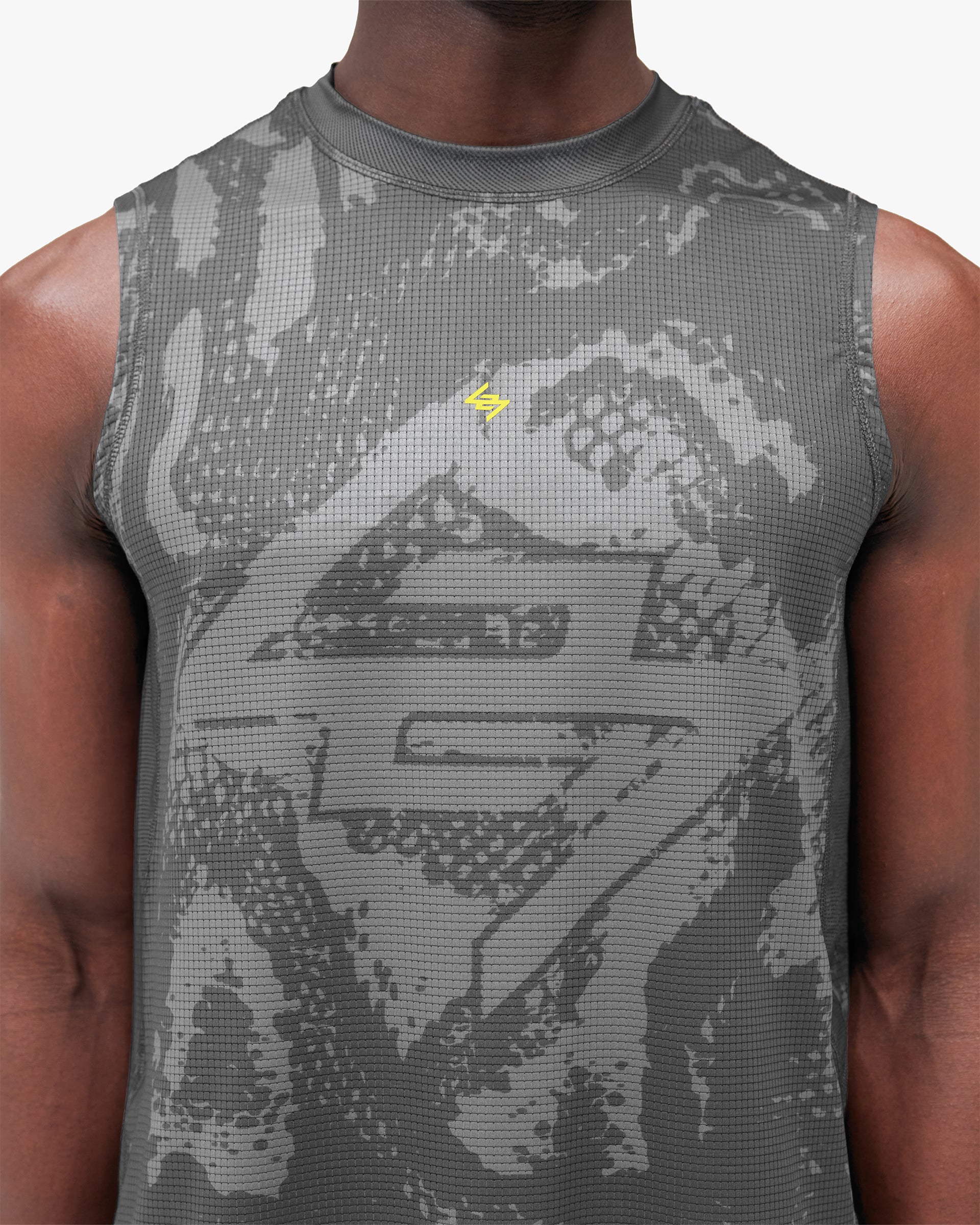 Introducing the 247 London Tank in Vintage Grey. Built from lightweight mesh fabric with an all-over tonal printed finish, this tank delivers wicking performance and quick-dry technology for high-output training sessions. Featuring a panelled back construction for enhanced airflow and a yellow 247 speed logo to the chest, engineered to keep you cool when the pace increases.