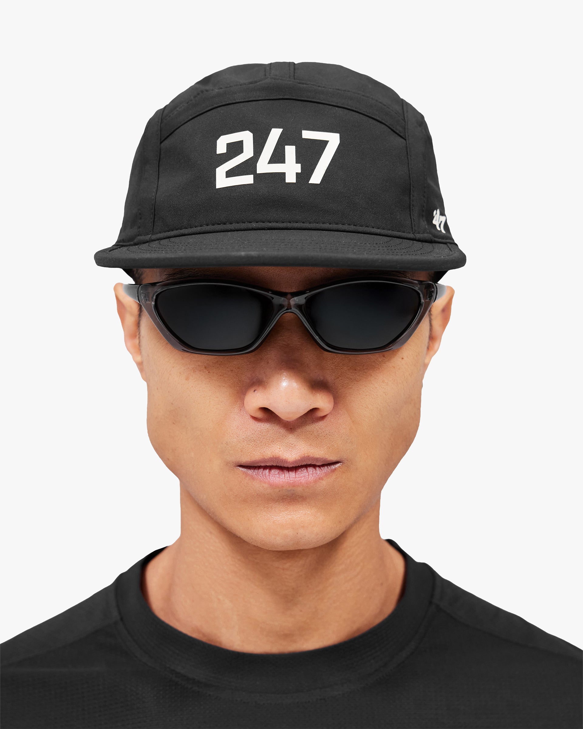 Introducing the 247 x 47 Taped Cap. A collaboration with heritage brand '47, this five-panel brrr° cap delivers cooling technology through the fabric whilst tape seam details reference vintage sportswear construction. A clip fastening provides adjustable fit.