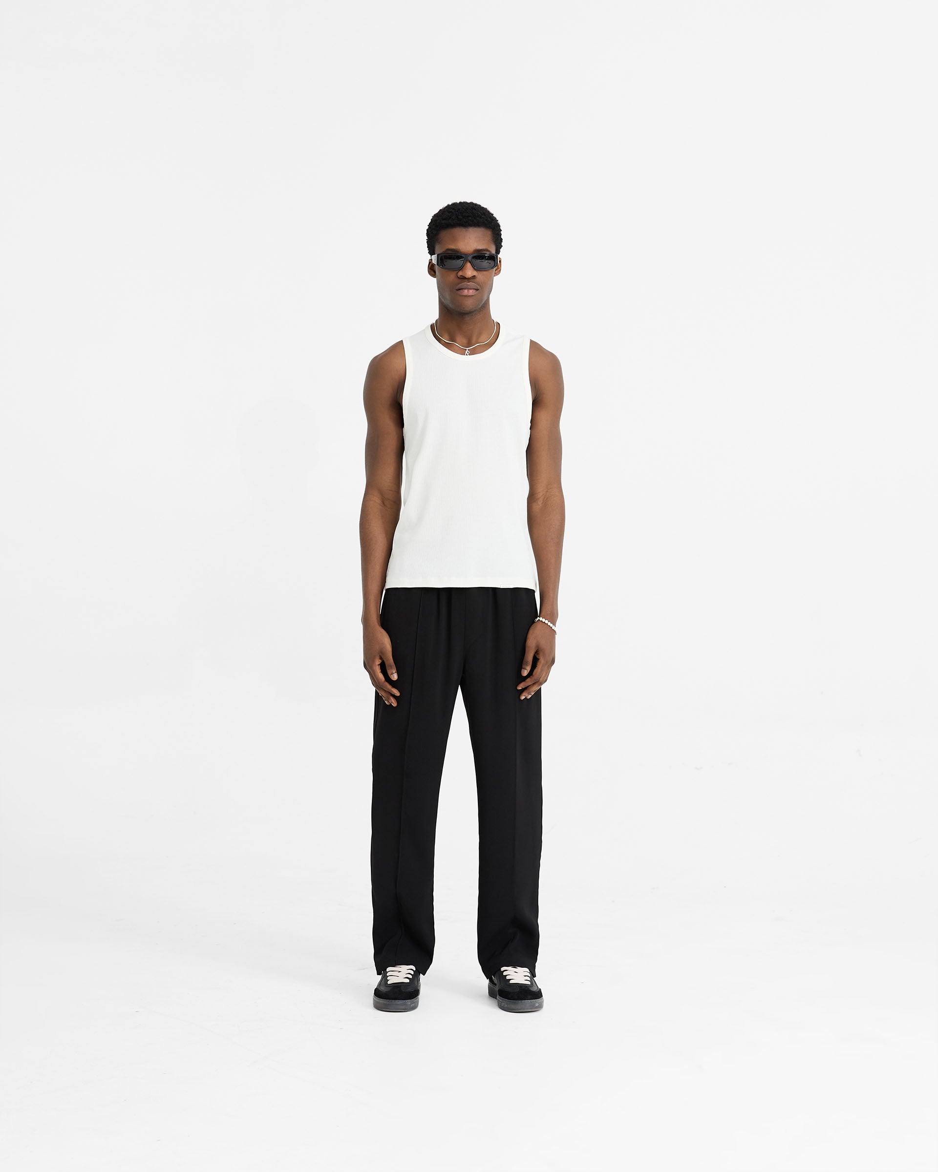 The Initial Rib Vest in flat white is a luxury take on the classic vest silhouette. Crafted from a lightweight soft rib, the vest has a regular fit, with neck and armhole binding details. It is finished with an embroidered Initial to the back neck and Represent metal bar logo to the hem.