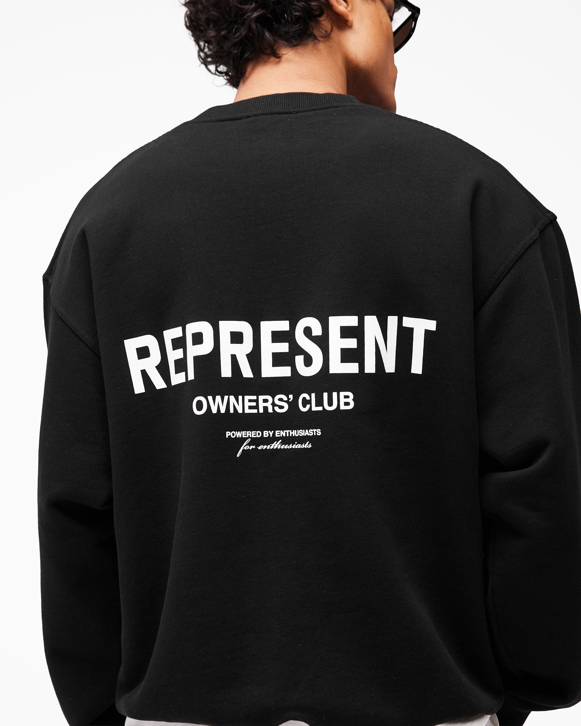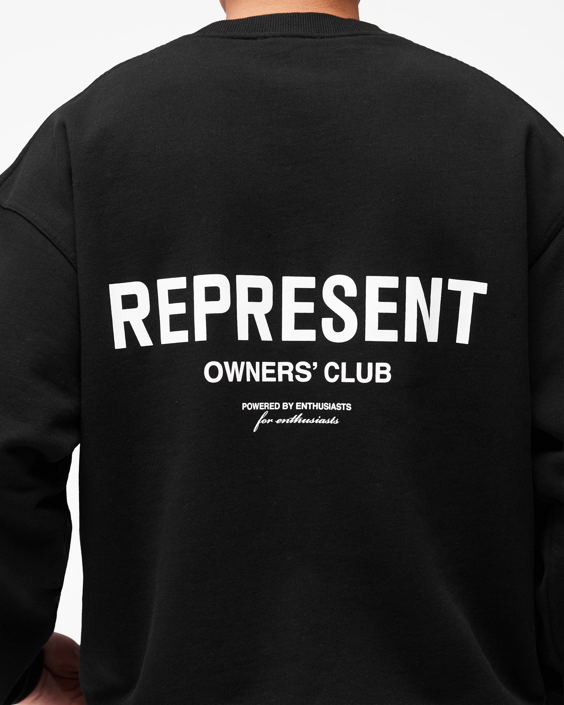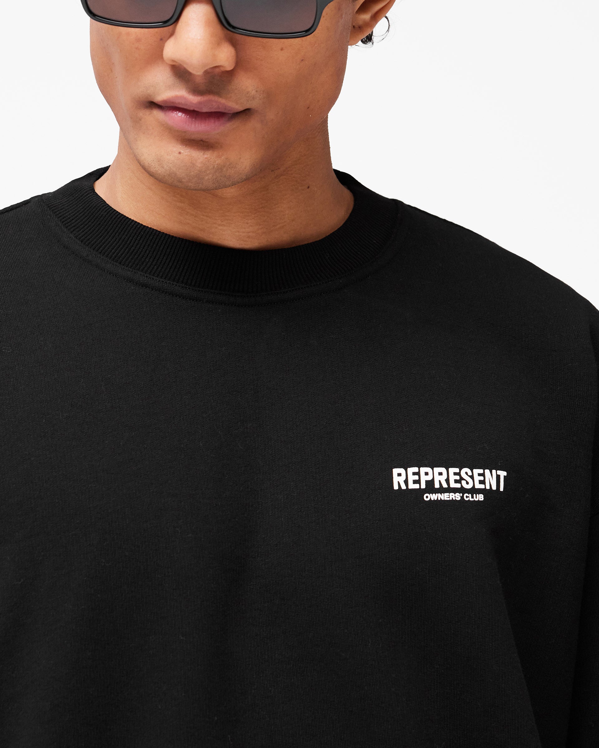 Introducing the Represent Owners Club Sweater in Black. Our most recognised collection, born in Manchester and worn worldwide. Cut from 480gsm heavyweight loopback cotton, piece dyed for depth of colour and pre-shrunk for a lived-in feel from the first wear. Owners Club branding sits to the chest and back, finished with a ribbed crewneck collar, ribbed trims and our signature oversized fit that falls wide and square.