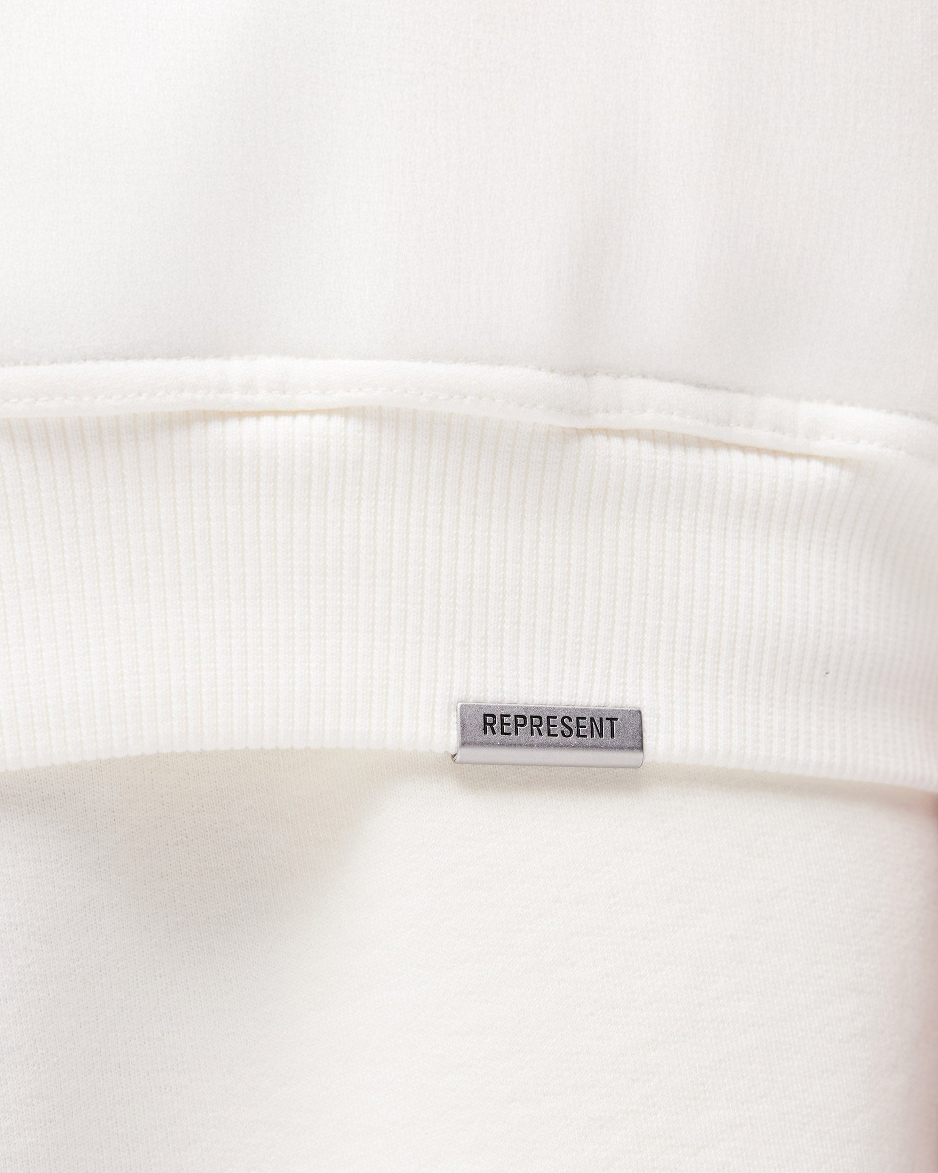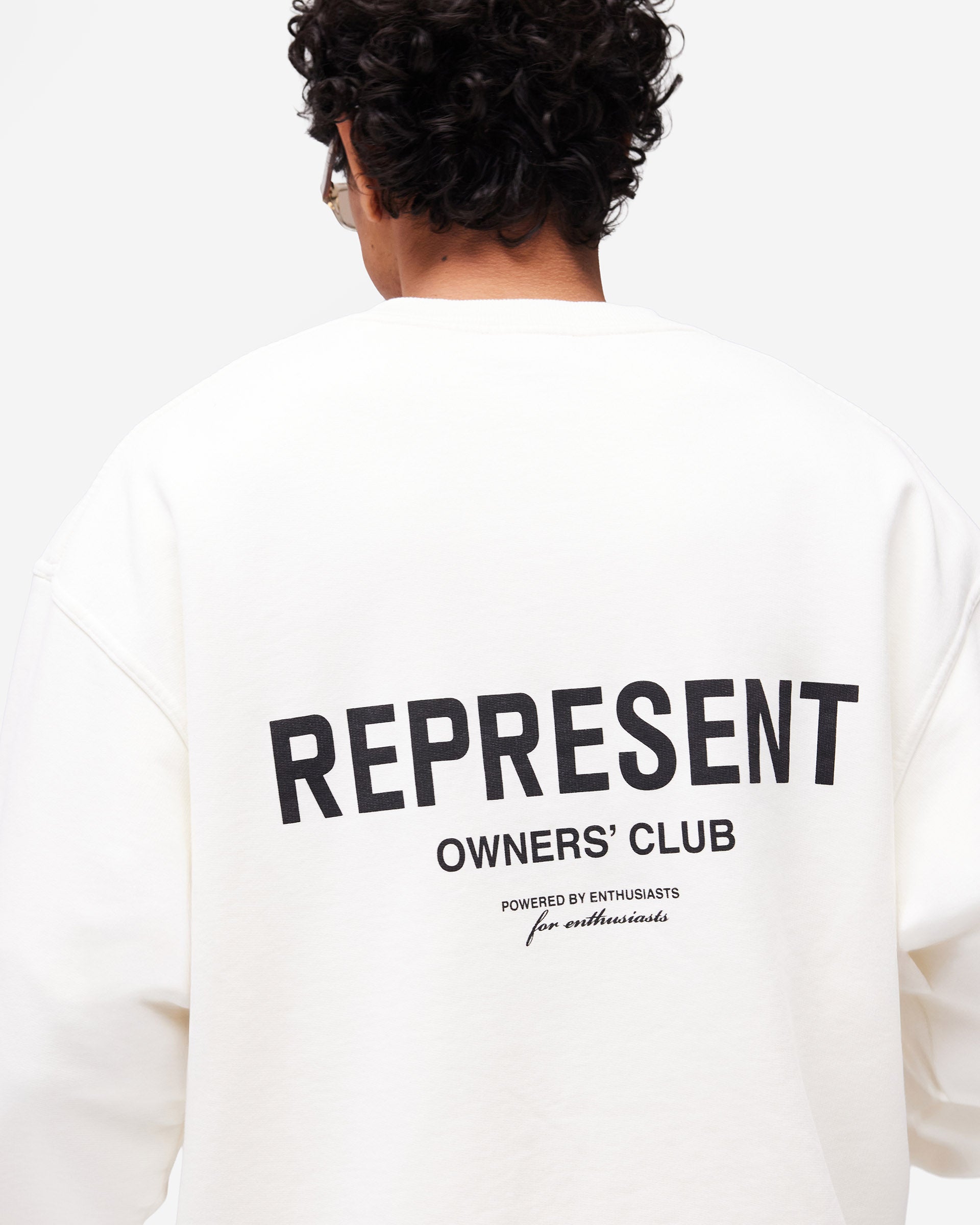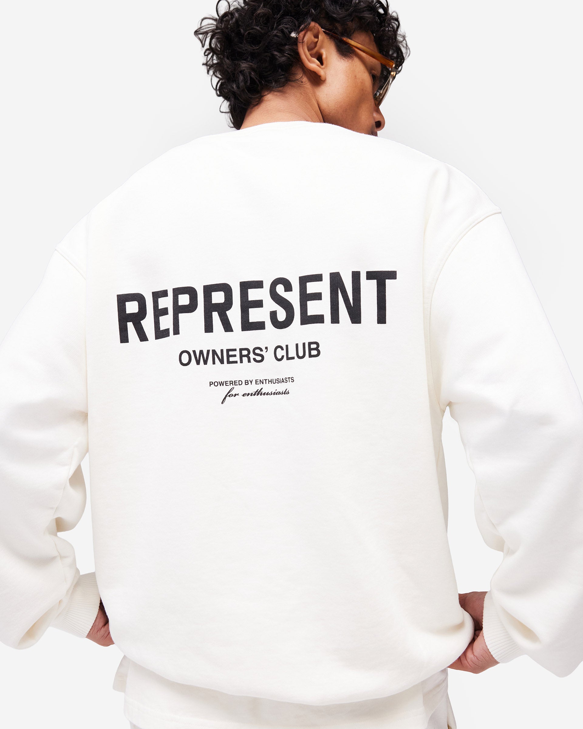 Introducing the Represent Owners Club Sweater in White. Our most recognised collection, born in Manchester and worn worldwide. Cut from 480gsm heavyweight loopback cotton, piece dyed for depth of colour and pre-shrunk for a lived-in feel from the first wear. Owners Club branding sits to the chest and back, finished with a ribbed crewneck collar, ribbed trims and our signature oversized fit that falls wide and square.