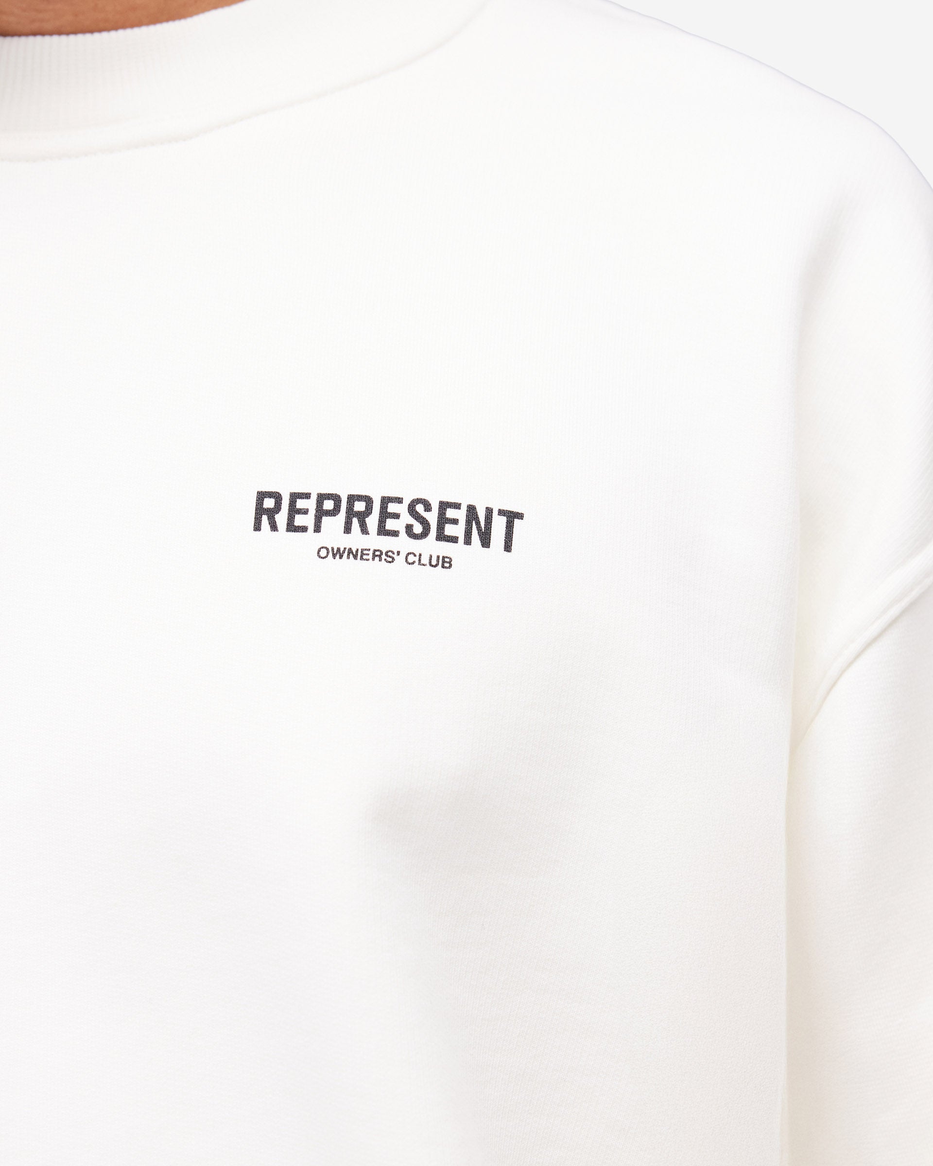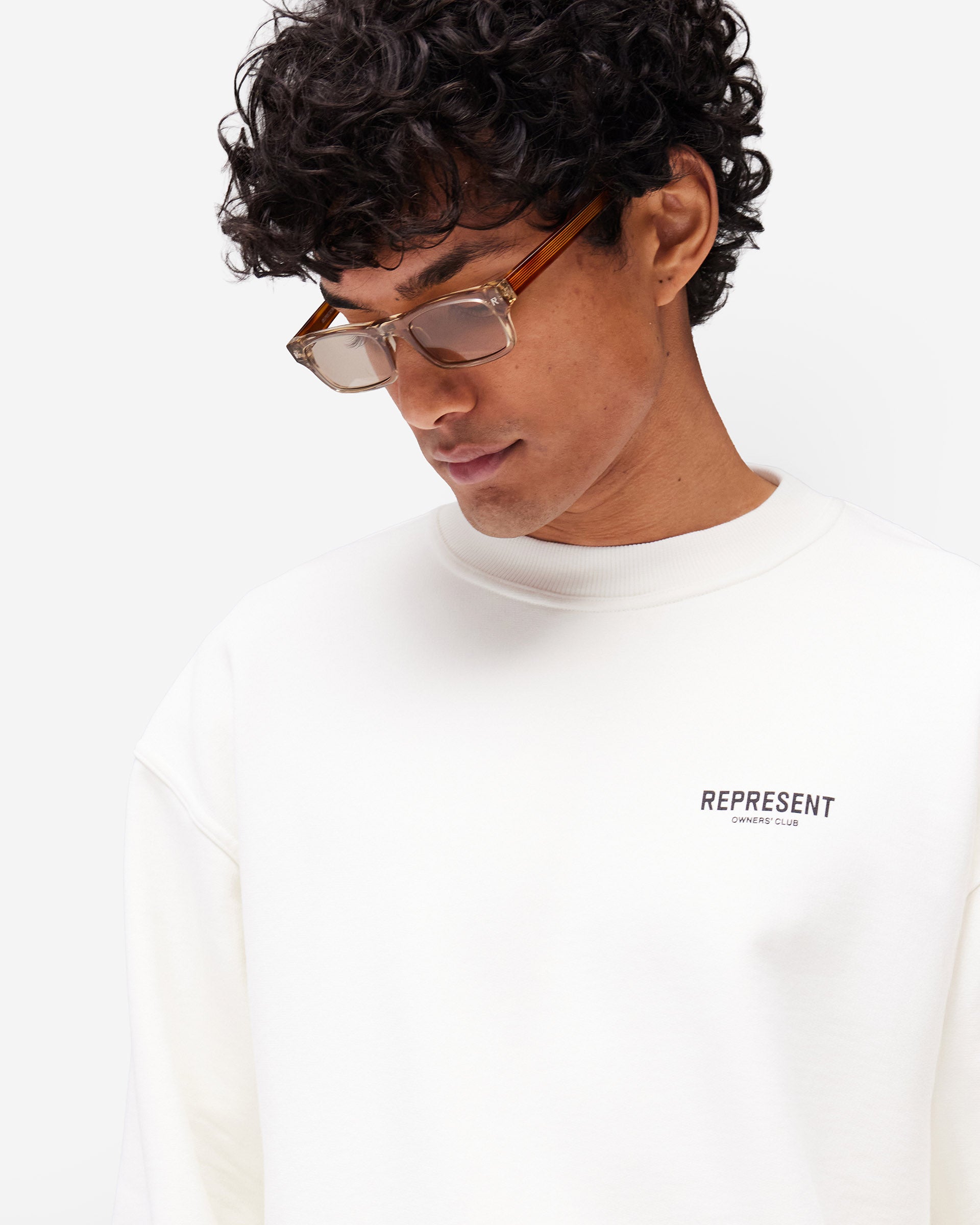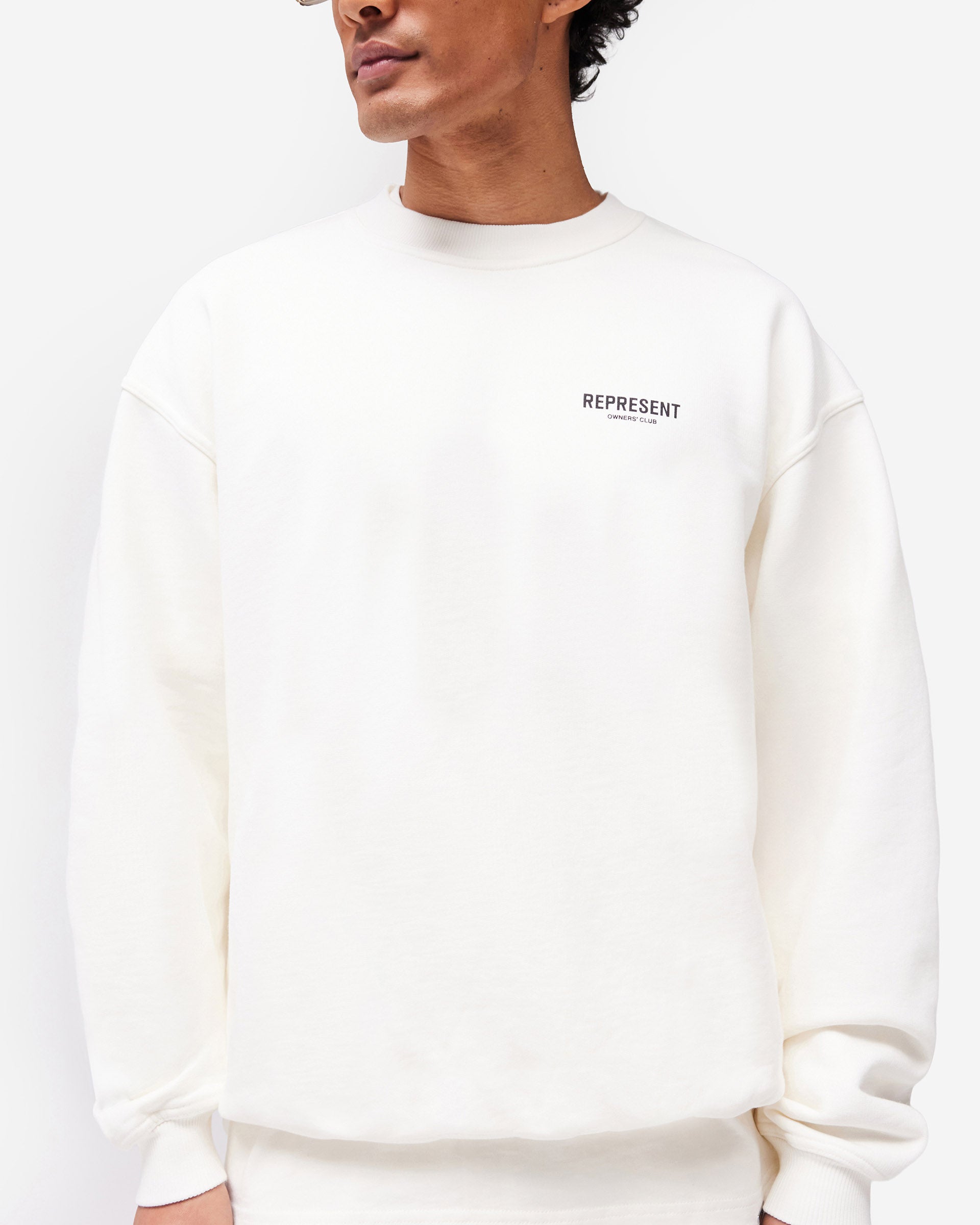 Introducing the Represent Owners Club Sweater in White. Our most recognised collection, born in Manchester and worn worldwide. Cut from 480gsm heavyweight loopback cotton, piece dyed for depth of colour and pre-shrunk for a lived-in feel from the first wear. Owners Club branding sits to the chest and back, finished with a ribbed crewneck collar, ribbed trims and our signature oversized fit that falls wide and square.