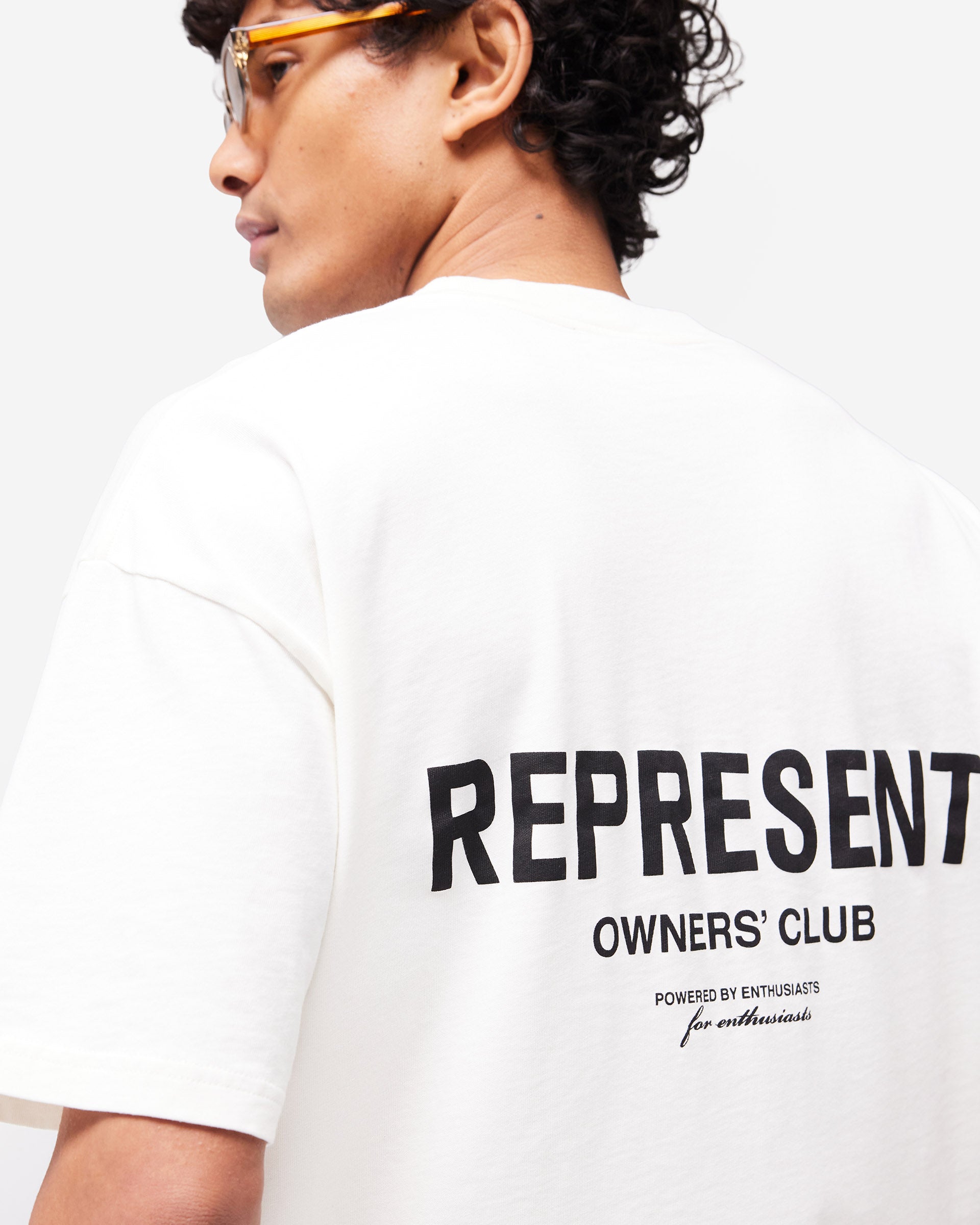 Introducing the Represent Owners Club T-Shirt. Our most recognised piece, born in Manchester and worn worldwide. Cut from 220gsm medium weight cotton, piece dyed for depth of colour and pre-shrunk for a consistent fit from the first wear. Owners Club branding sits to the chest and back with a Represent metal bar logo to the hem, finished with a ribbed crewneck collar and our signature oversized fit that falls wide and square. Made in Portugal.