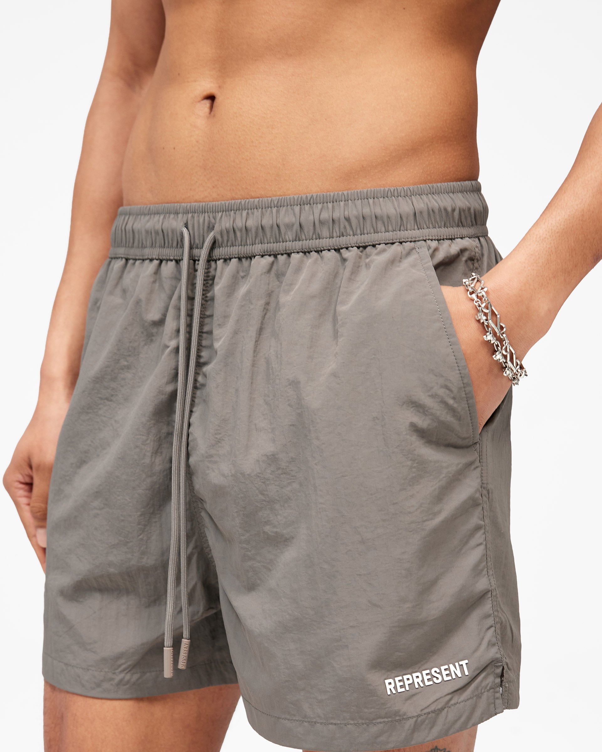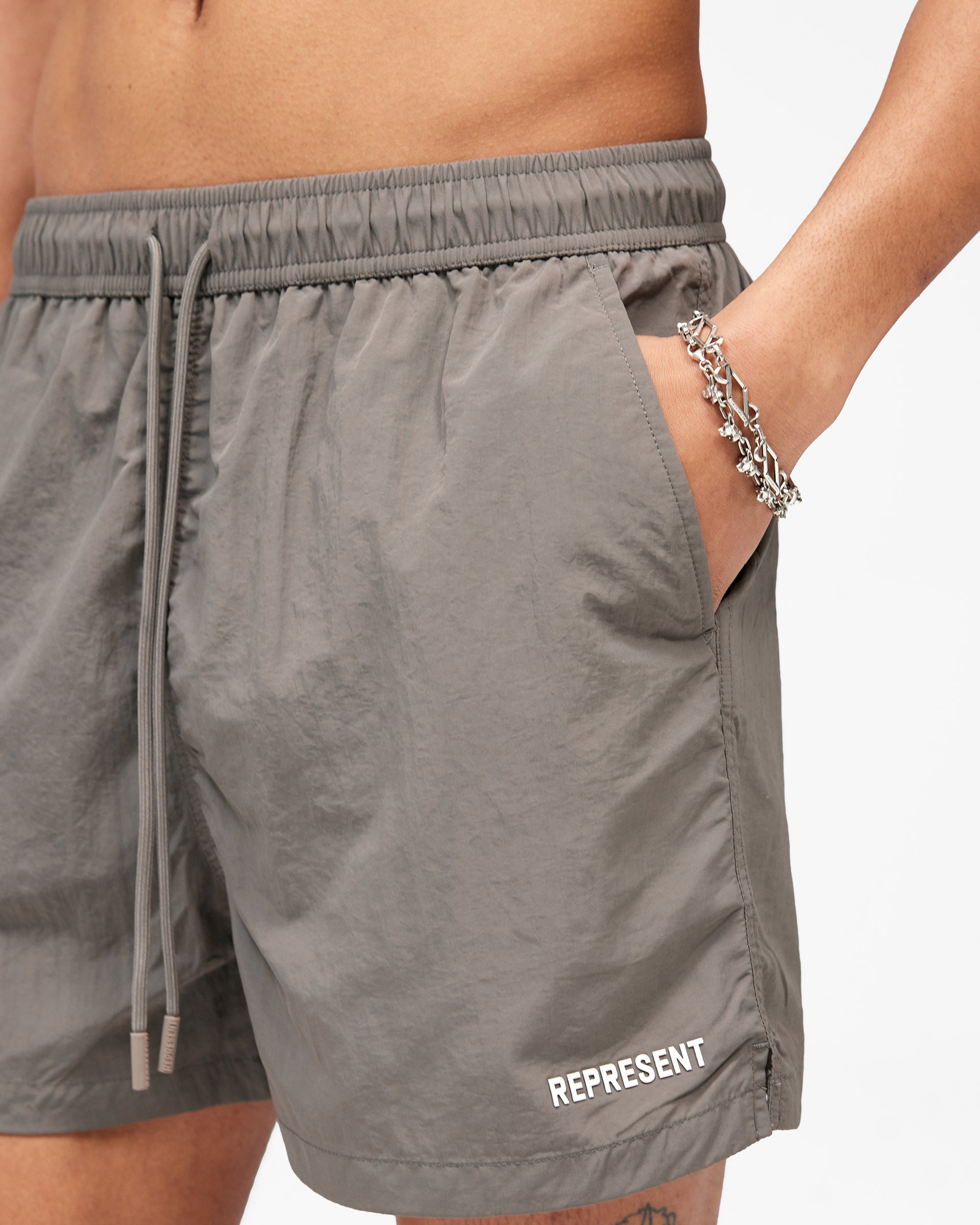 Introducing the Represent Swim Short in Earth, a quick-dry essential crafted for ease and versatility. Designed with an elasticated waistband and drawcord for a secure fit, the piece features practical side and back pockets alongside mesh lining and tonal Represent branding. Built for both poolside and coastal wear.