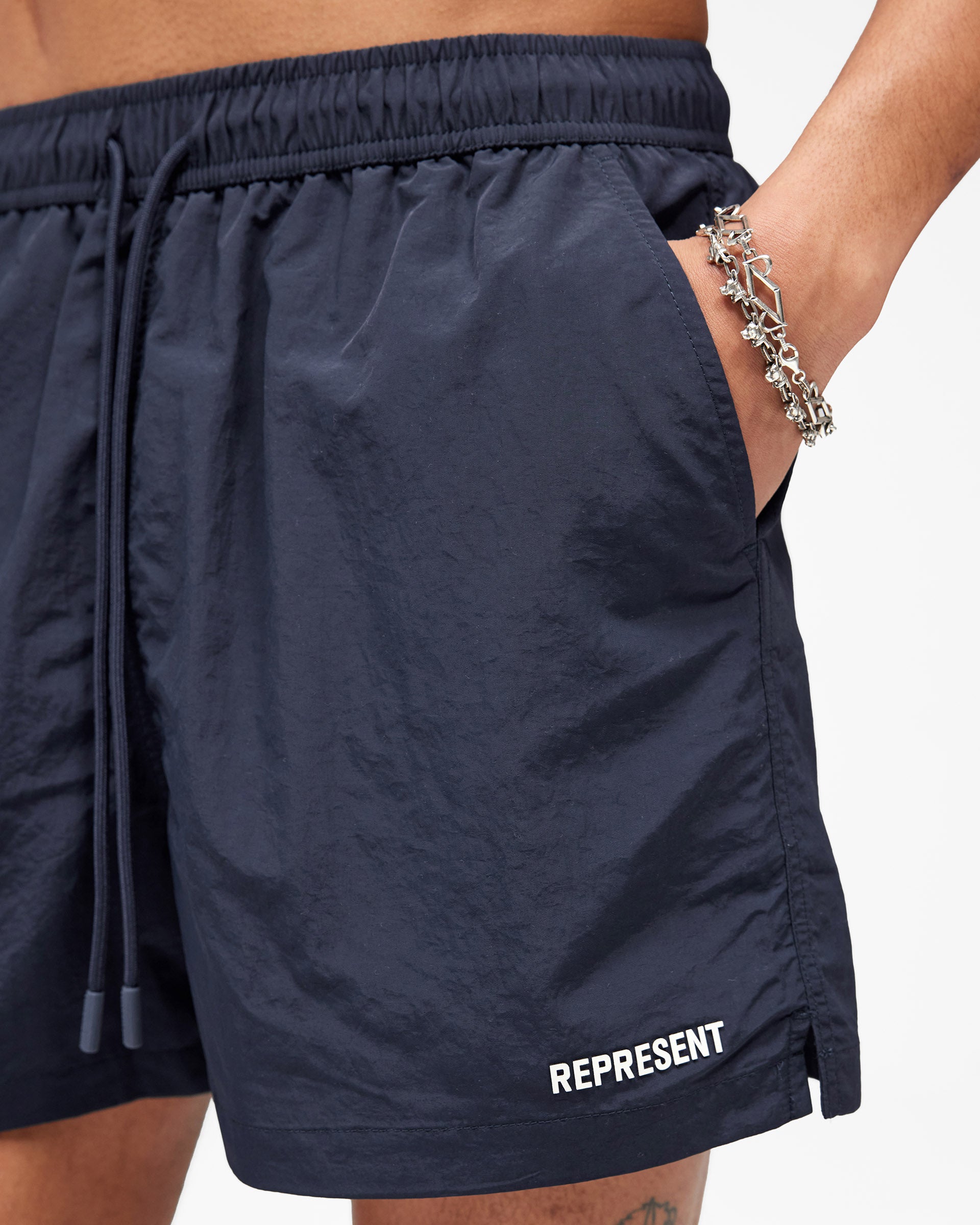 Introducing the Represent Swim Short in Navy, a quick-dry essential crafted for ease and versatility. Designed with an elasticated waistband and drawcord for a secure fit, the piece features practical side and back pockets alongside mesh lining and tonal Represent branding. Built for both poolside and coastal wear.