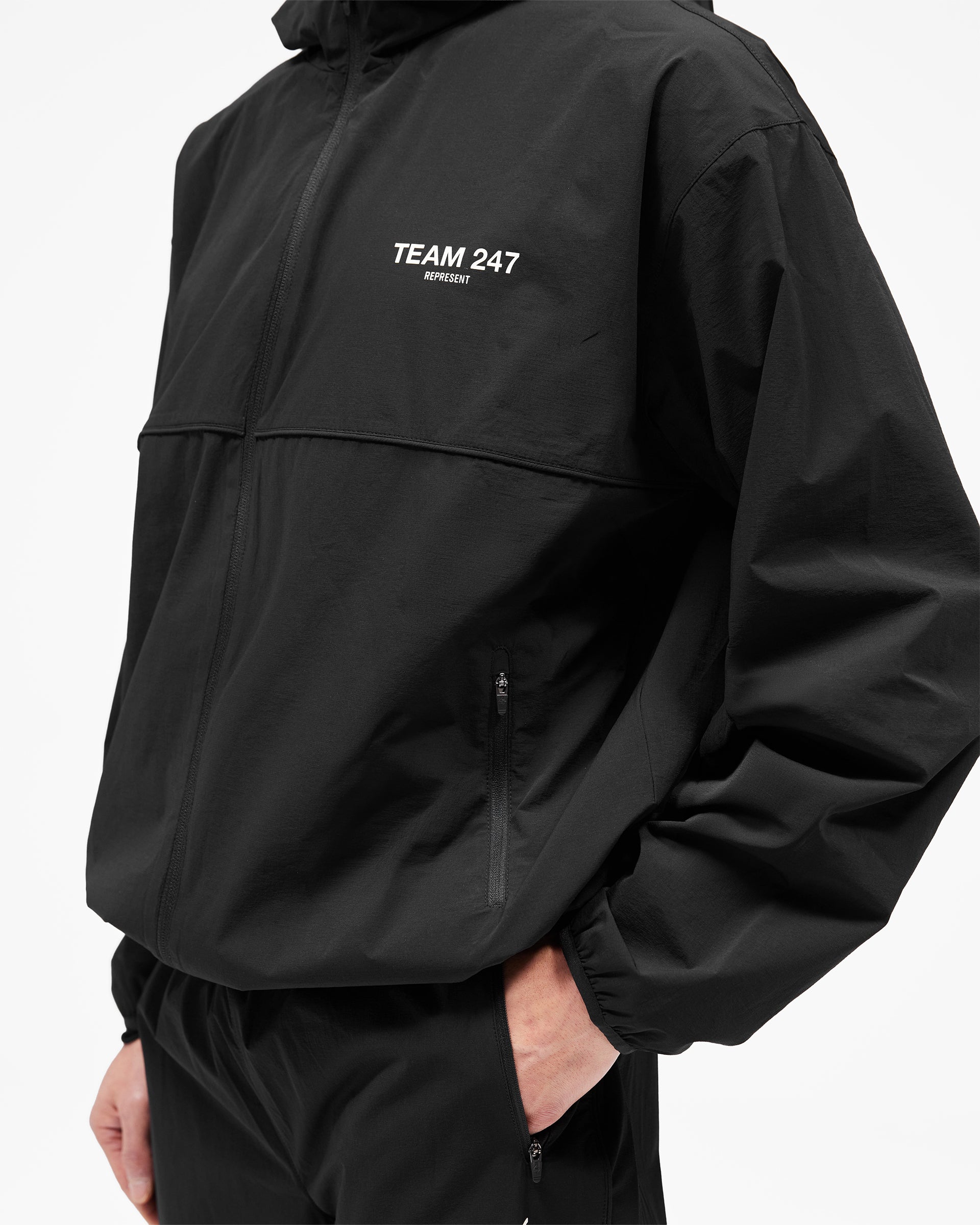 Introducing the Team 247 Track Jacket in Jet Black for SS26. Extending the Team 247 catalogue, this track jacket features zip pockets, mesh lining and 247 logos to the hood. Darts in the elbows provide improved articulation for unrestricted movement, whilst team branding throughout delivers the signature 247 aesthetic. A versatile layer for warm-ups, cool-downs and everyday wear.